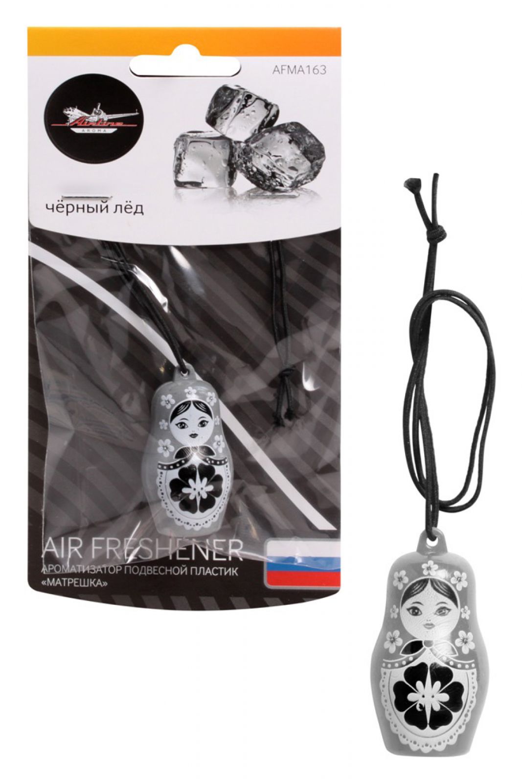 Ароматизатор подвесной пластик "Матрешка" черный лед (AFMA163)
