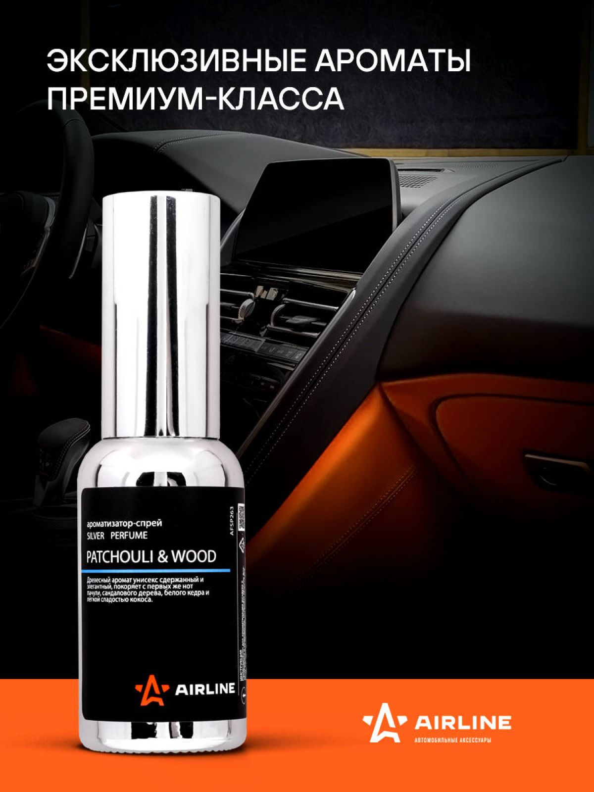 Ароматизатор-спрей "SILVER" Perfume PATCHOULI & WOOD 30мл (AFSP263)