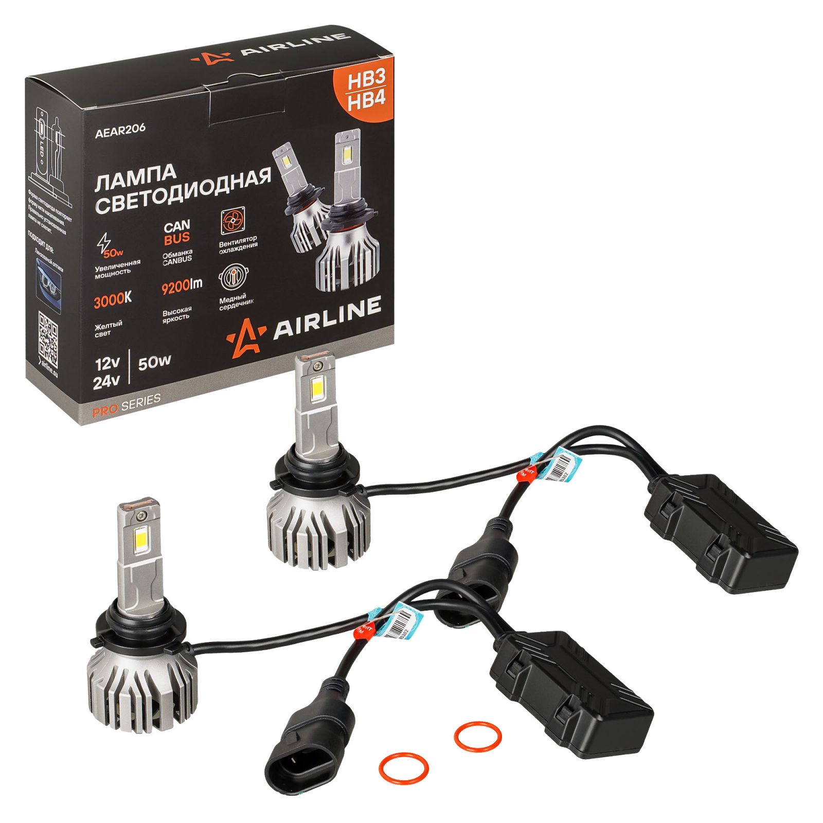 Лампа светодиод. HB3/HB4 PRO, 50Вт, 9200Лм (4600Лм x 2), 3000К, 12/24В, кмпл. 2 шт. (AEAR206)