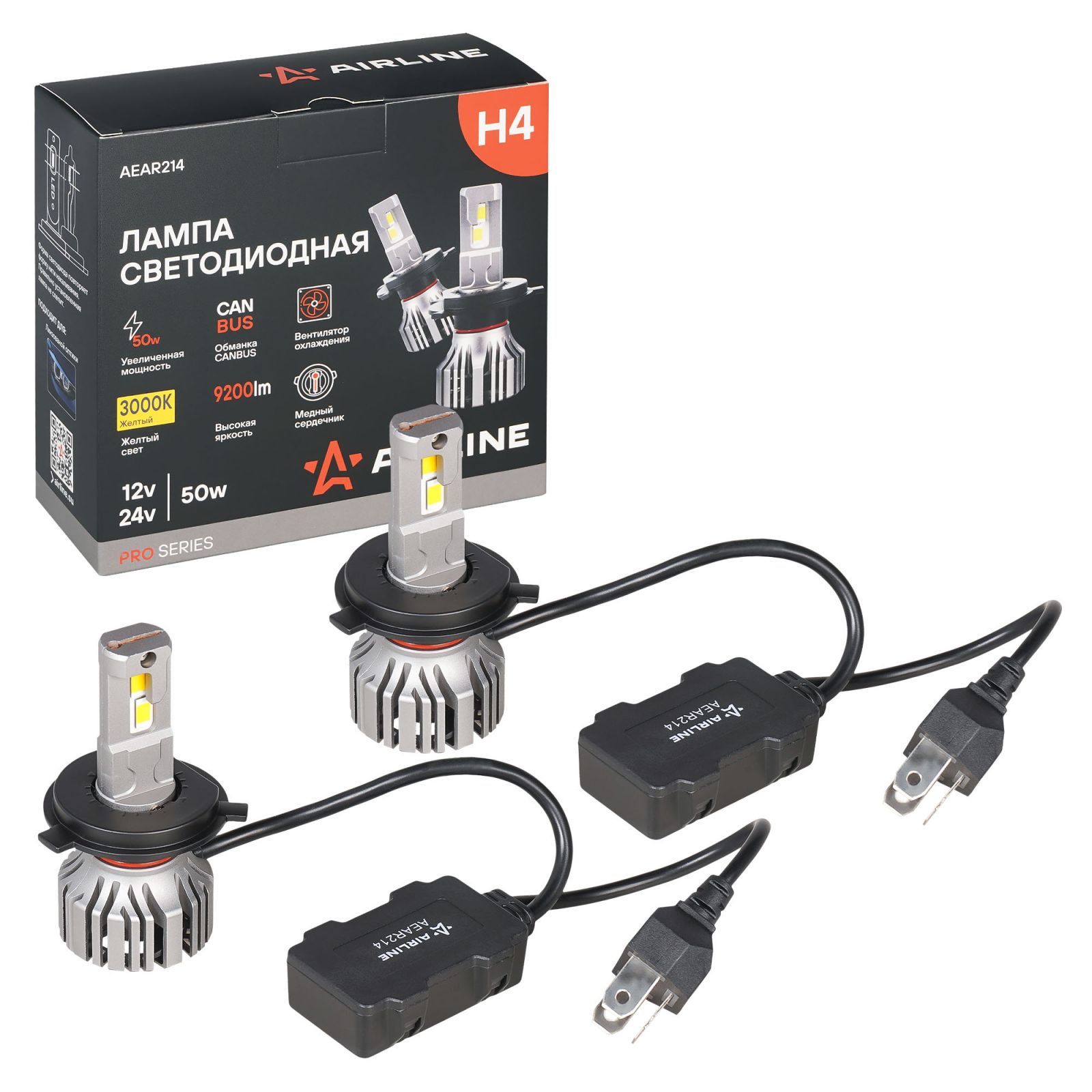 Лампа светодиод. H4 PRO, 50Вт, 9200Лм (4600Лм x 2), 3000К, 12/24В, кмпл. 2 шт. (AEAR214)
