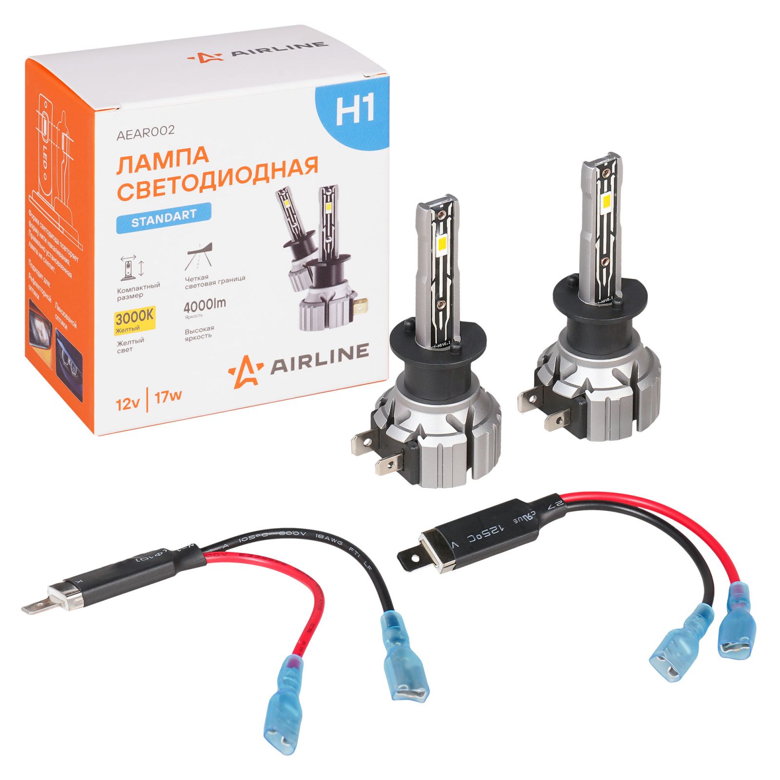Лампа светодиод. H1 STANDARD, 17Вт, 4000Лм (2000Лм x 2), 3000К, 12В, кмпл. 2 шт. (AEAR002)
