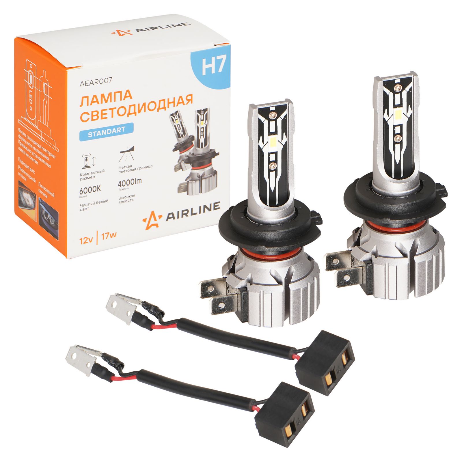 Лампа светодиод. H7 STANDARD, 17Вт, 4000Лм (2000Лм x 2), 6000К, 12В, кмпл. 2 шт. (AEAR007)