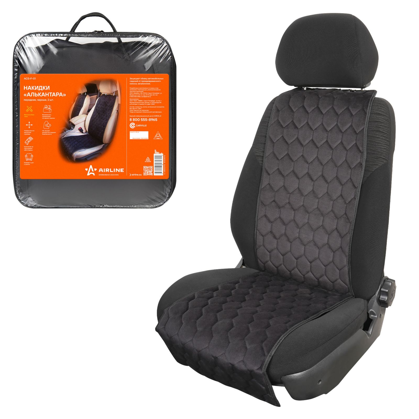 Накидки "Алькантара", передние (2 шт.), черные, универсальные (ACS-F-01)