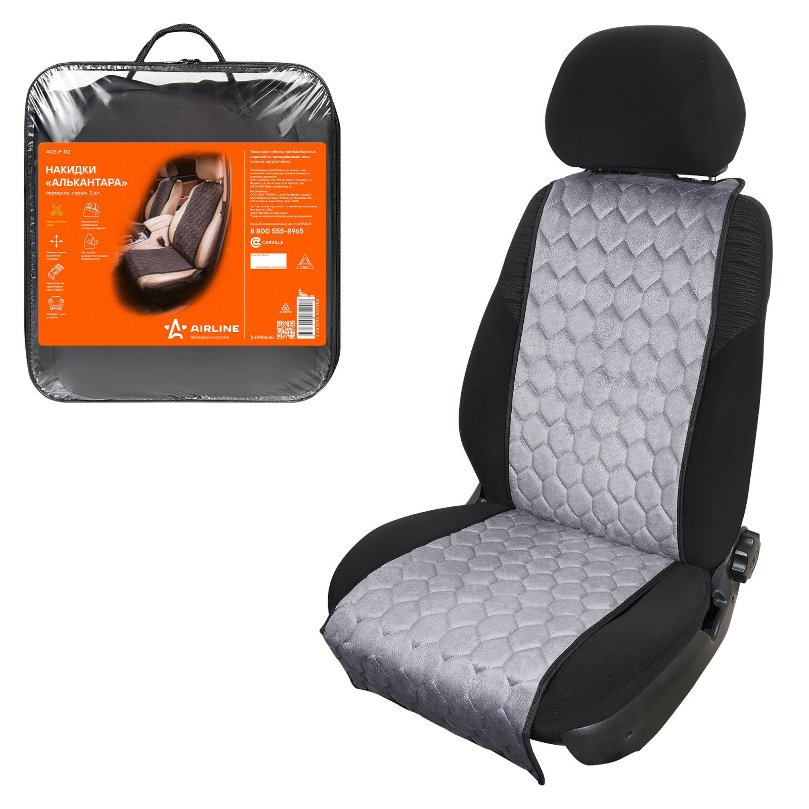 Накидки "Алькантара", передние (2 шт.), серые, универсальные (ACS-F-02)
