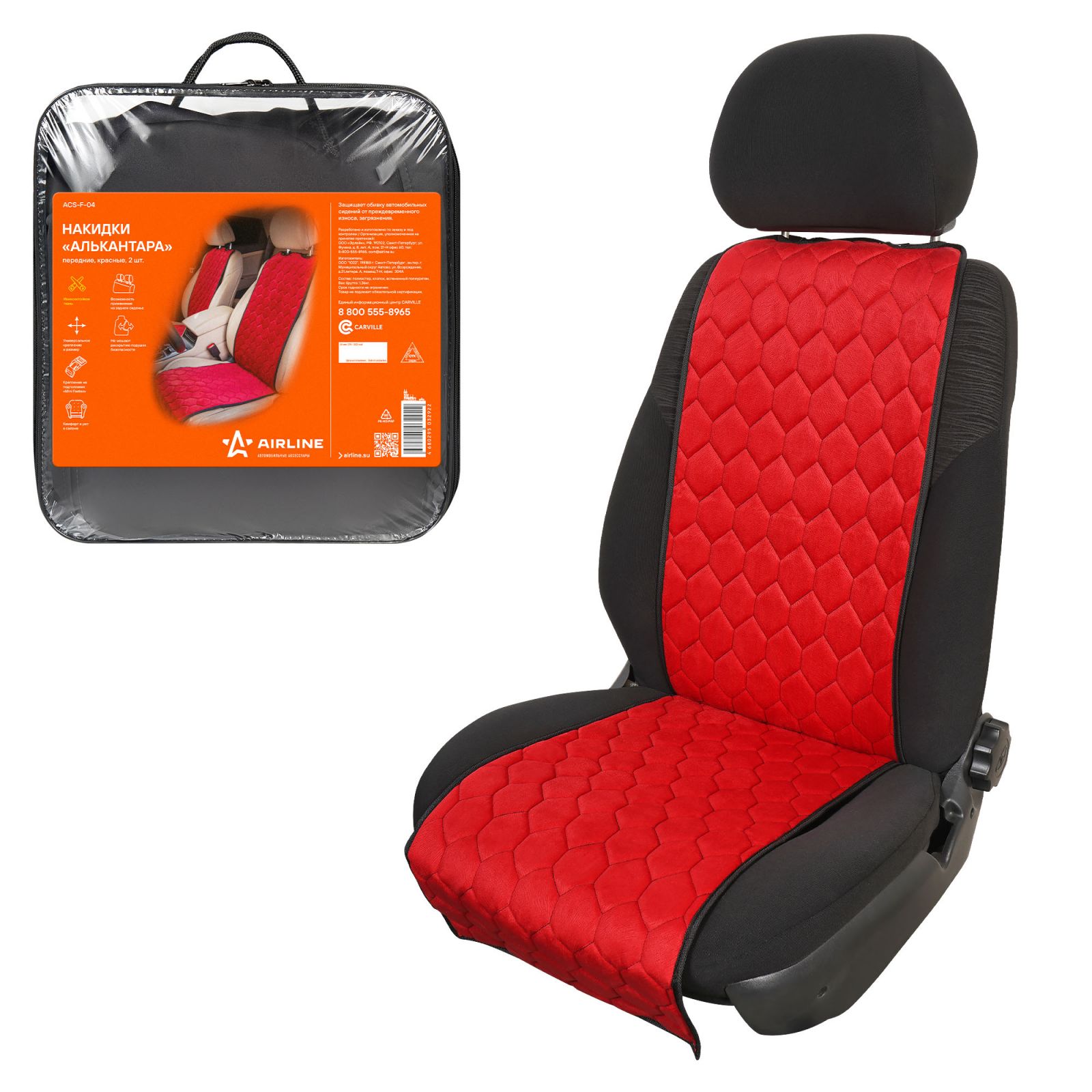 Накидки "Алькантара", передние (2 шт.), красные, универсальные (ACS-F-04)