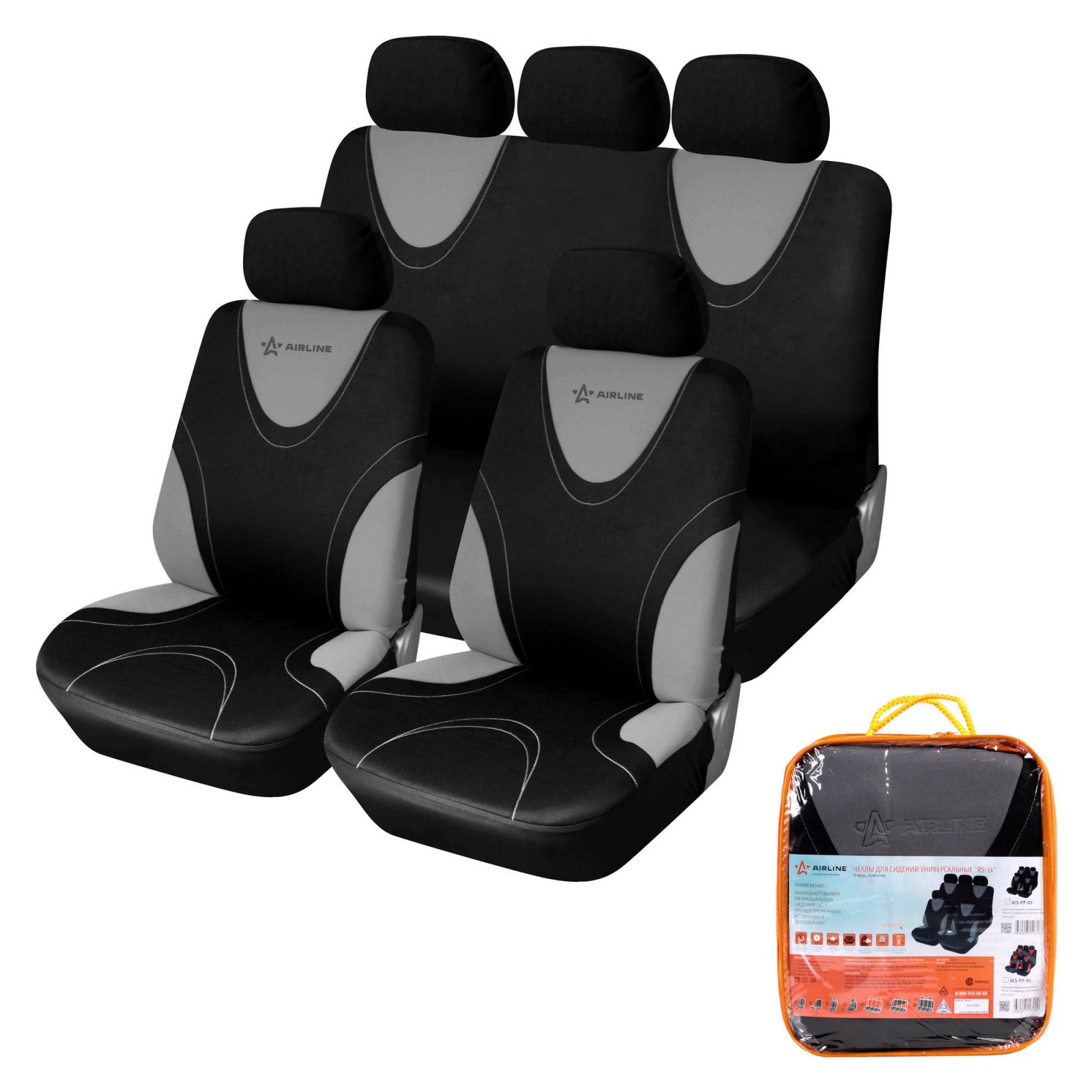 Чехлы для сидений универсал. "RS-1k", передн./задн.(9 предм.), полиэстер, черн./сер. (ACS-PP-03)