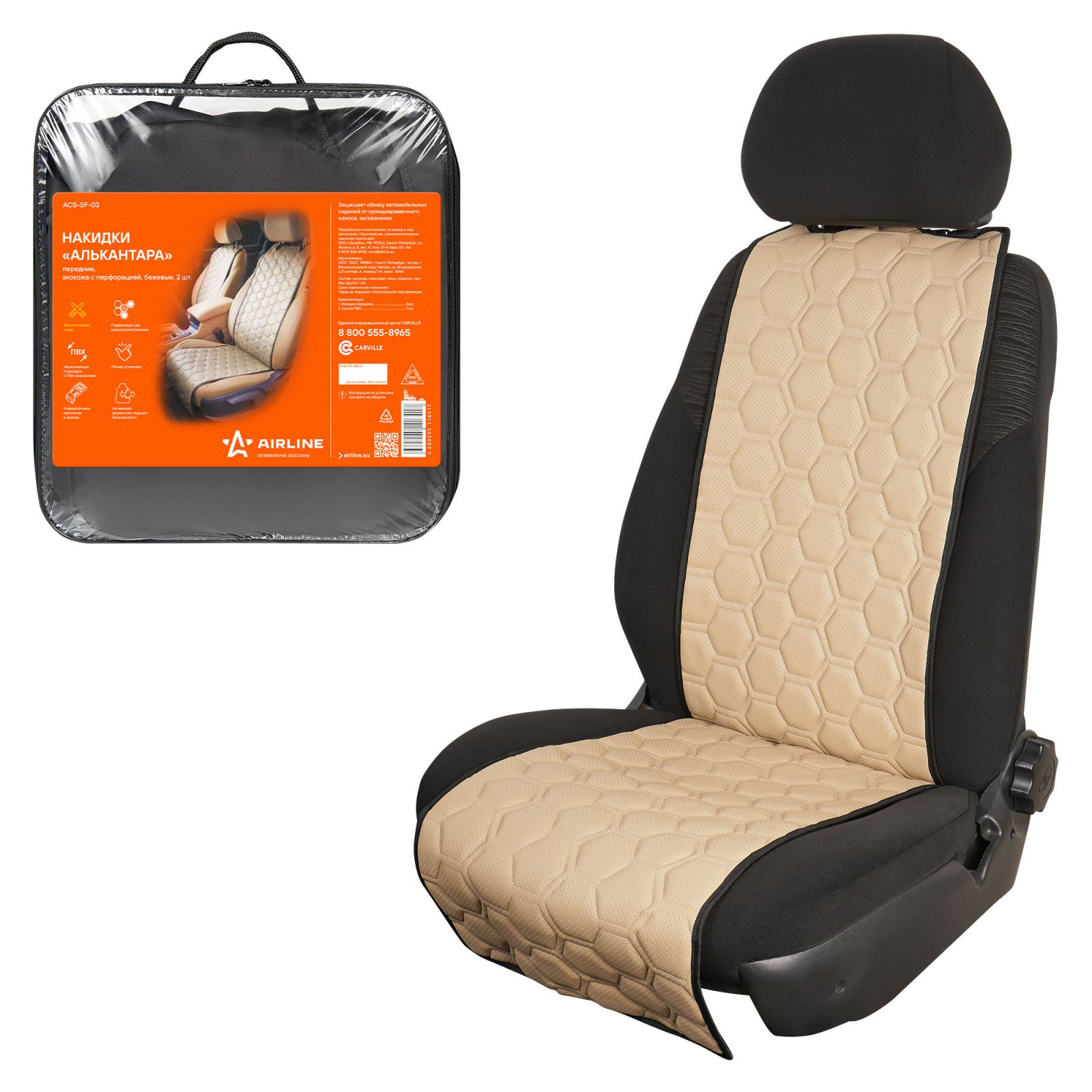 Накидки "Алькантара", передние (2 шт.), экокожа с перфорацией, бежевые (ACS-SF-03)