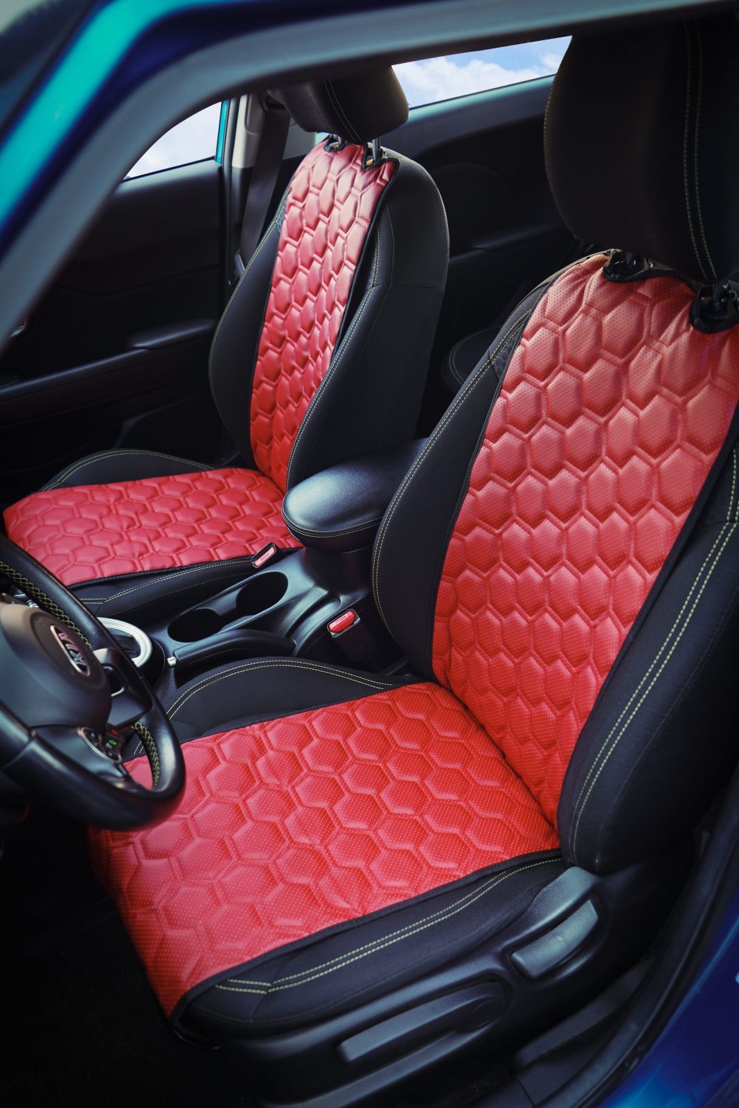Накидки "Алькантара", передние (2 шт.), экокожа с перфорацией, красные (ACS-SF-04)