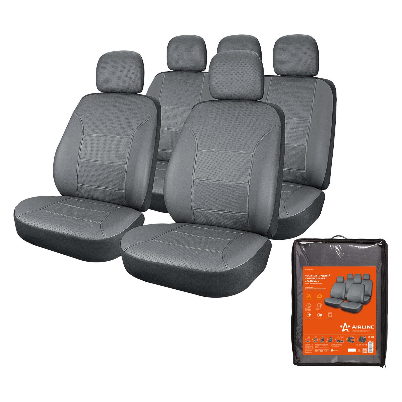 Чехлы для сидений универсальные "CARDINAL", 11 пред, экокожа, цвет серый (ACS-UEL-01)
