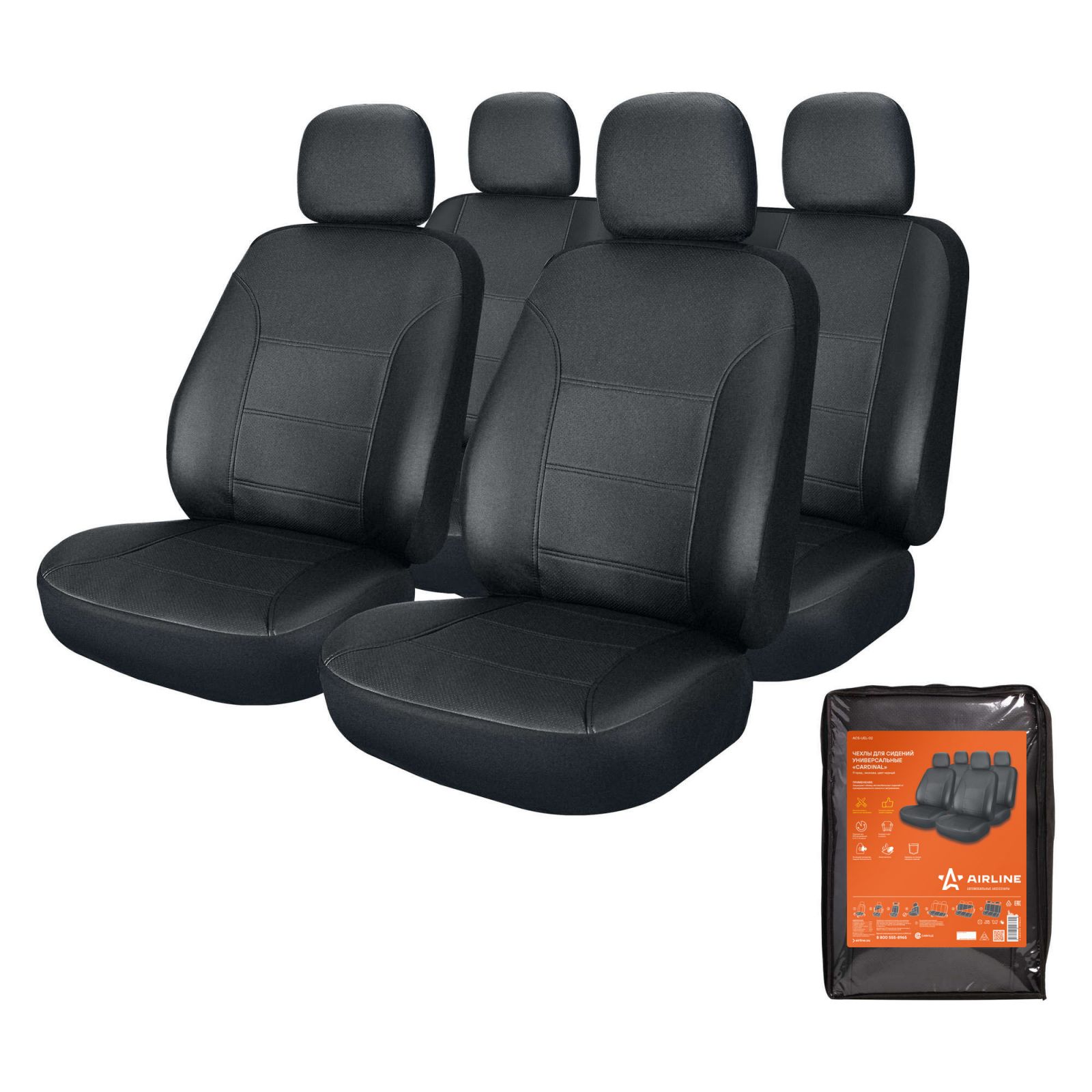 Чехлы для сидений универсальные "CARDINAL", 11 пред., экокожа, цвет черный (ACS-UEL-02)