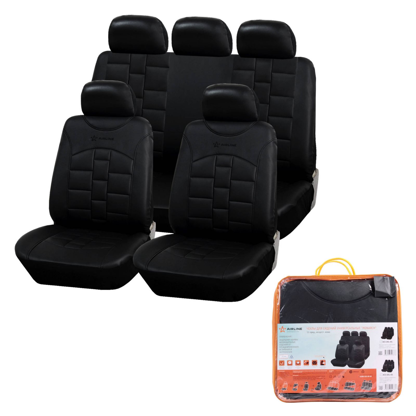Чехлы для сидений универсальные "MONARCH", 11 пред, искусст.кожа, черн. (ACS-UEL-04)