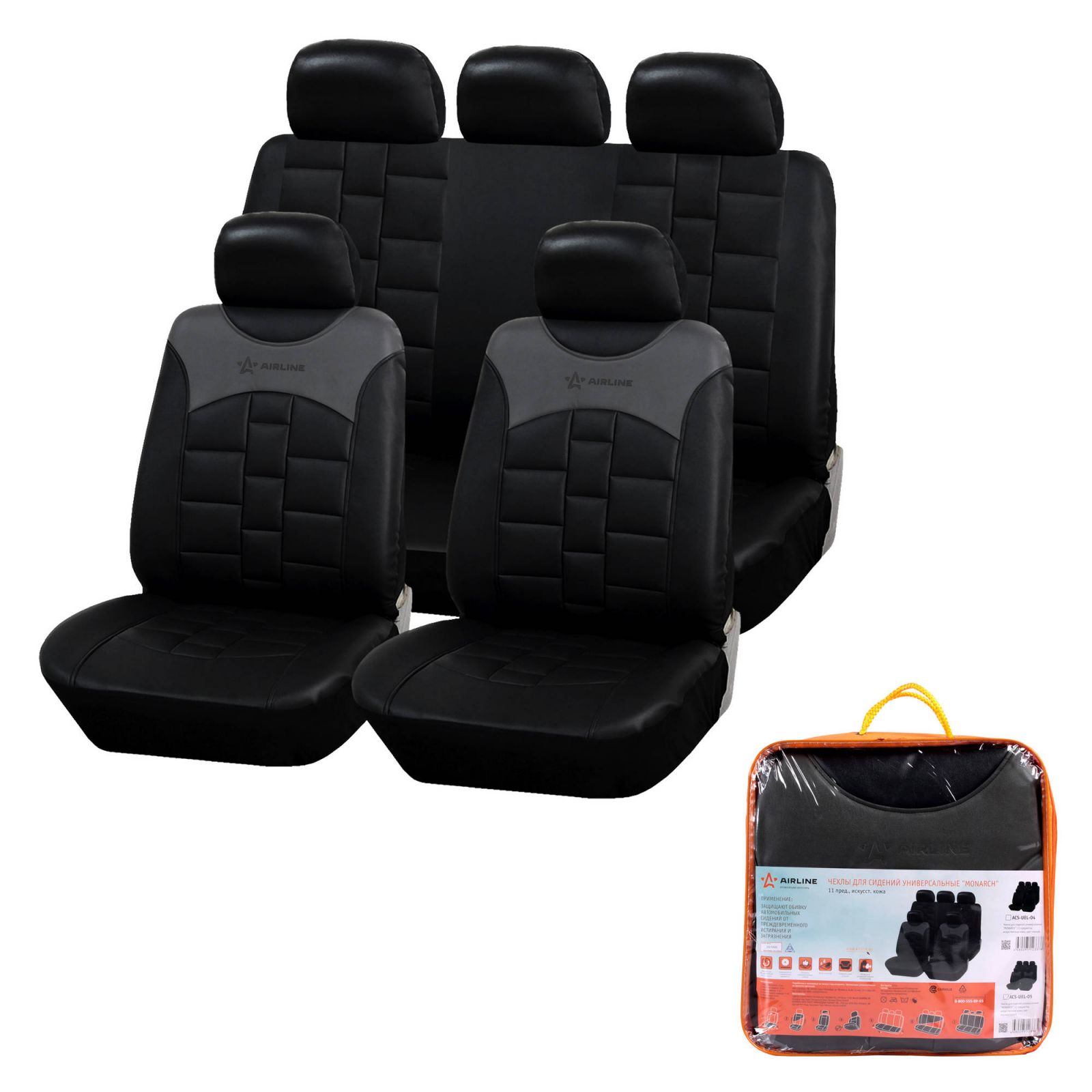Чехлы для сидений универсальные "MONARCH", 11 пред., искусст.кожа, цвет черн./сер. (ACS-UEL-05)