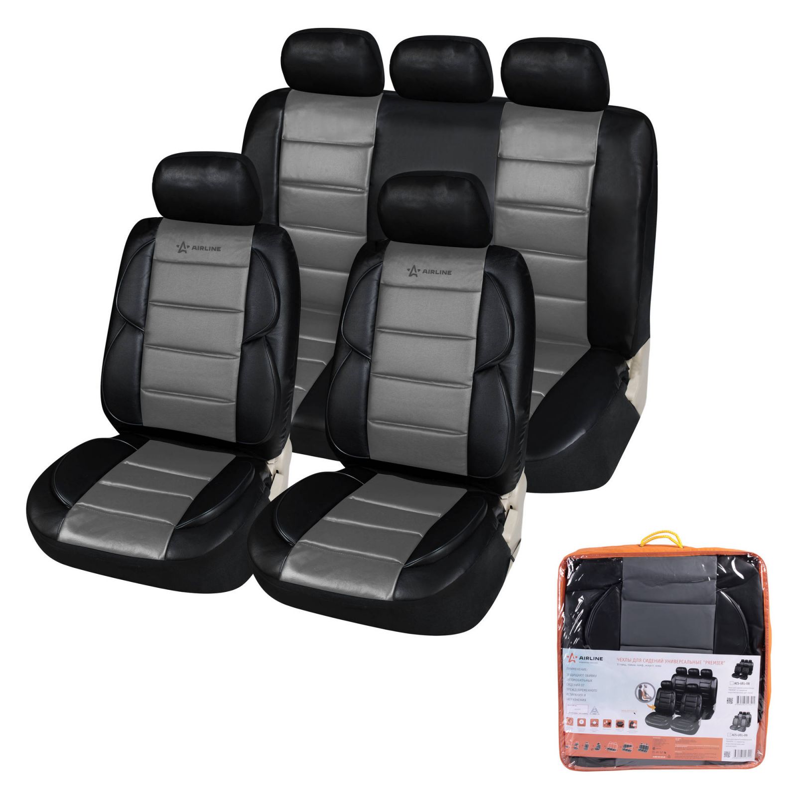 Чехлы для сидений универсальные "PREMIER", 11 пред., повыш. комфорт, иск.кожа, черн./сер. (ACS-UEL-09)