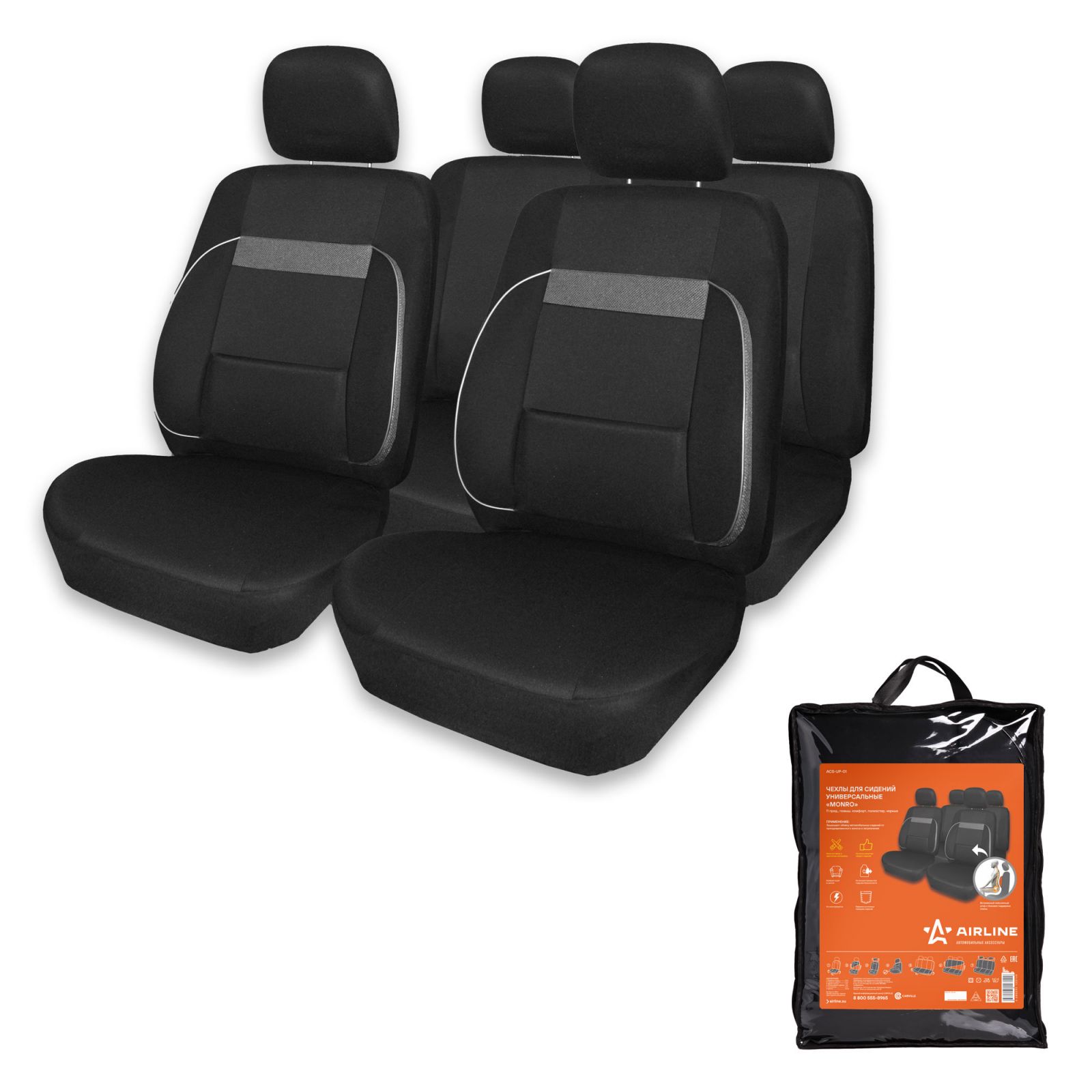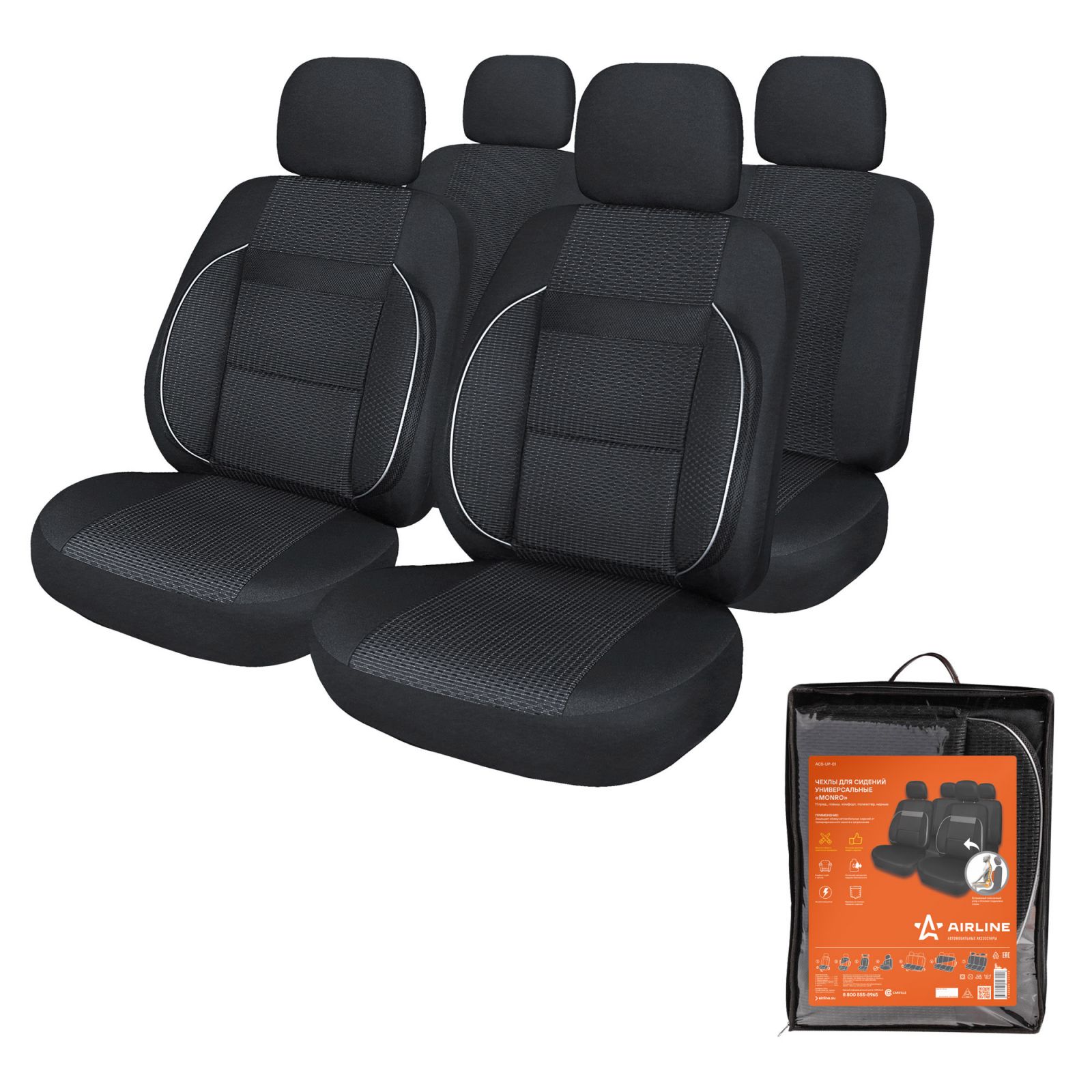 Чехлы для сидений универсальные "MONRO", 11 пред., повыш. комфорт, полиэстер, черн. (ACS-UP-01)