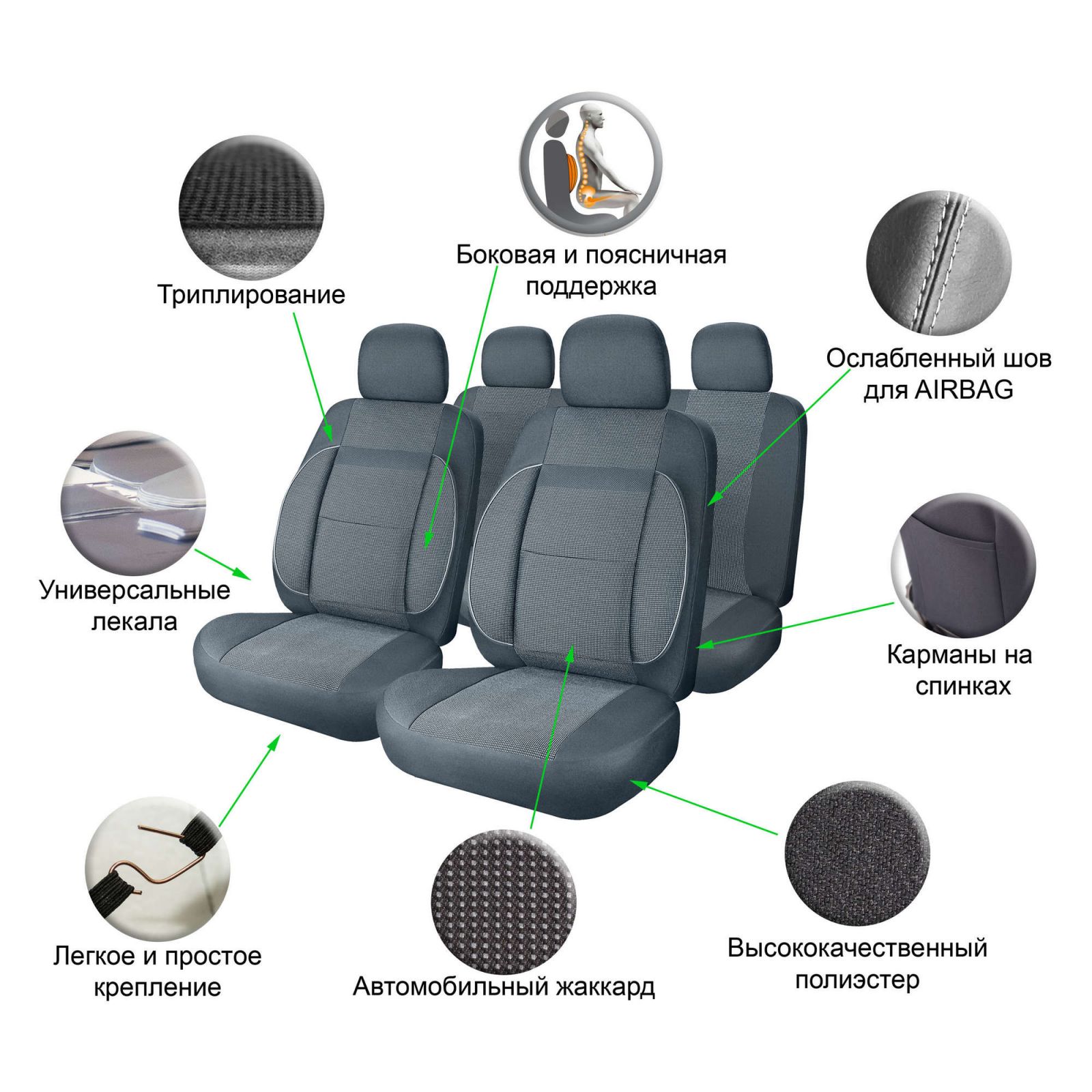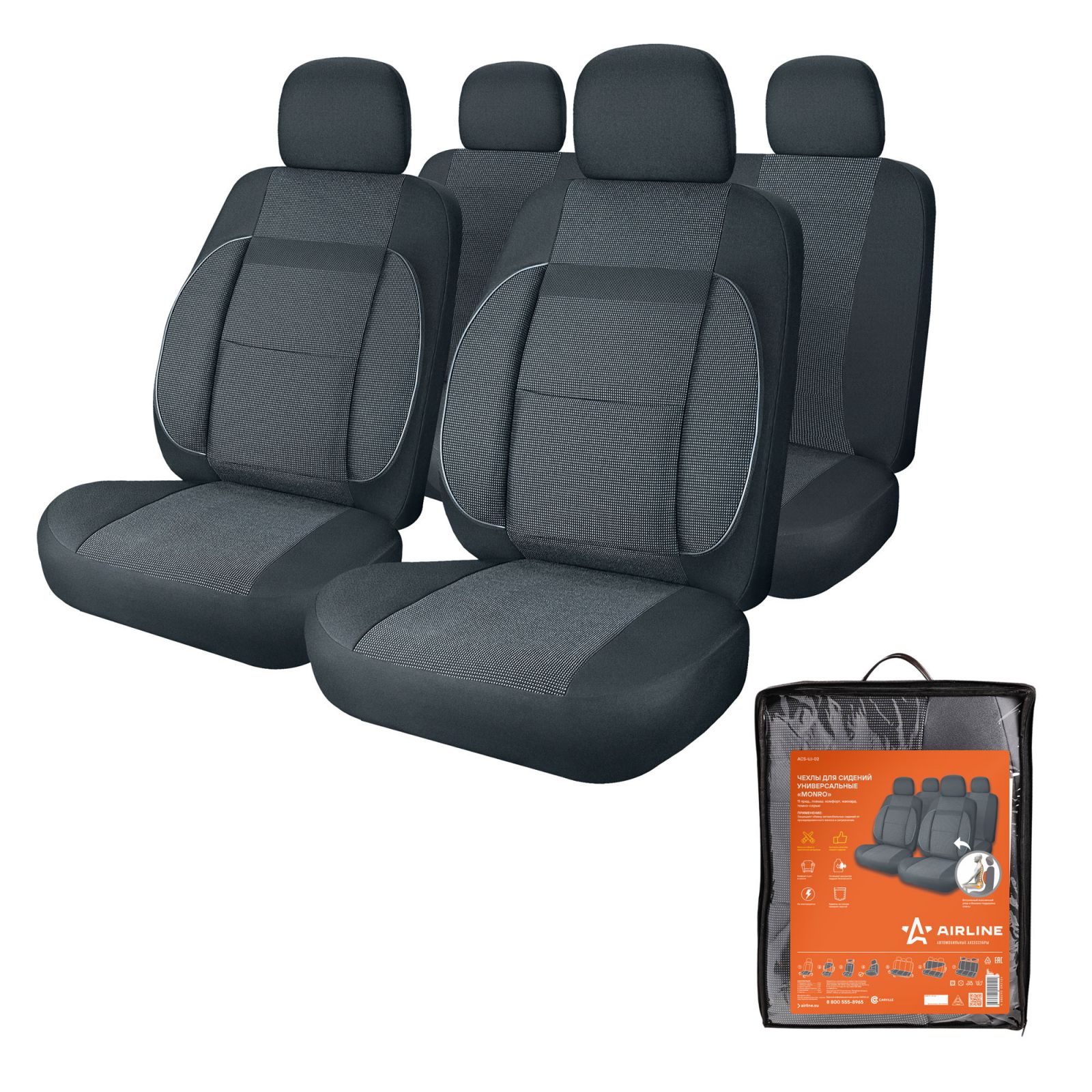 Чехлы для сидений универсальные "MONRO", 11 пред., повыш. комфорт, жаккард, темно-сер. (ACS-UJ-02)