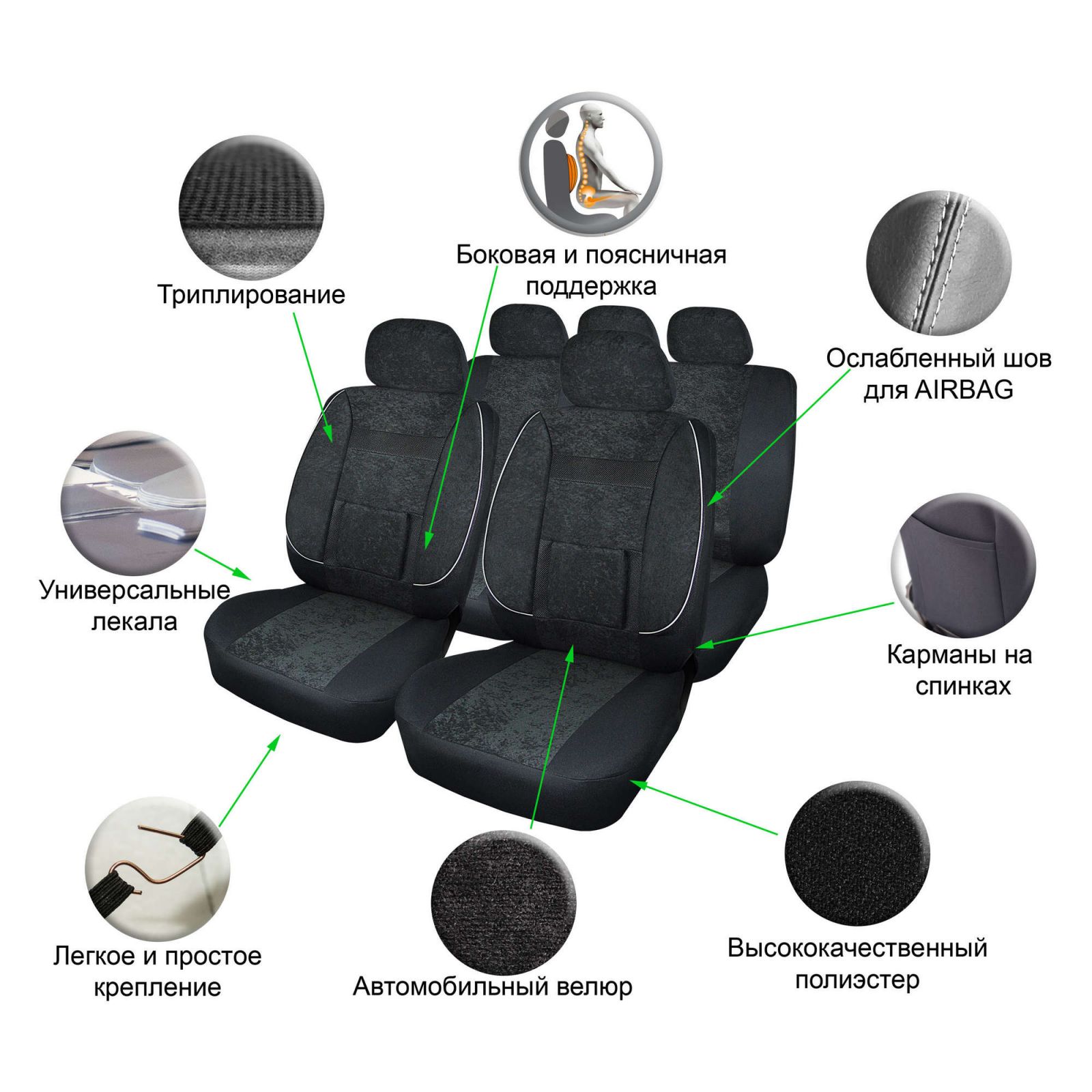 Чехлы-майки "Блааст" комплект передние/задние, цвет черный, материал велюр (ASC-KB-04)