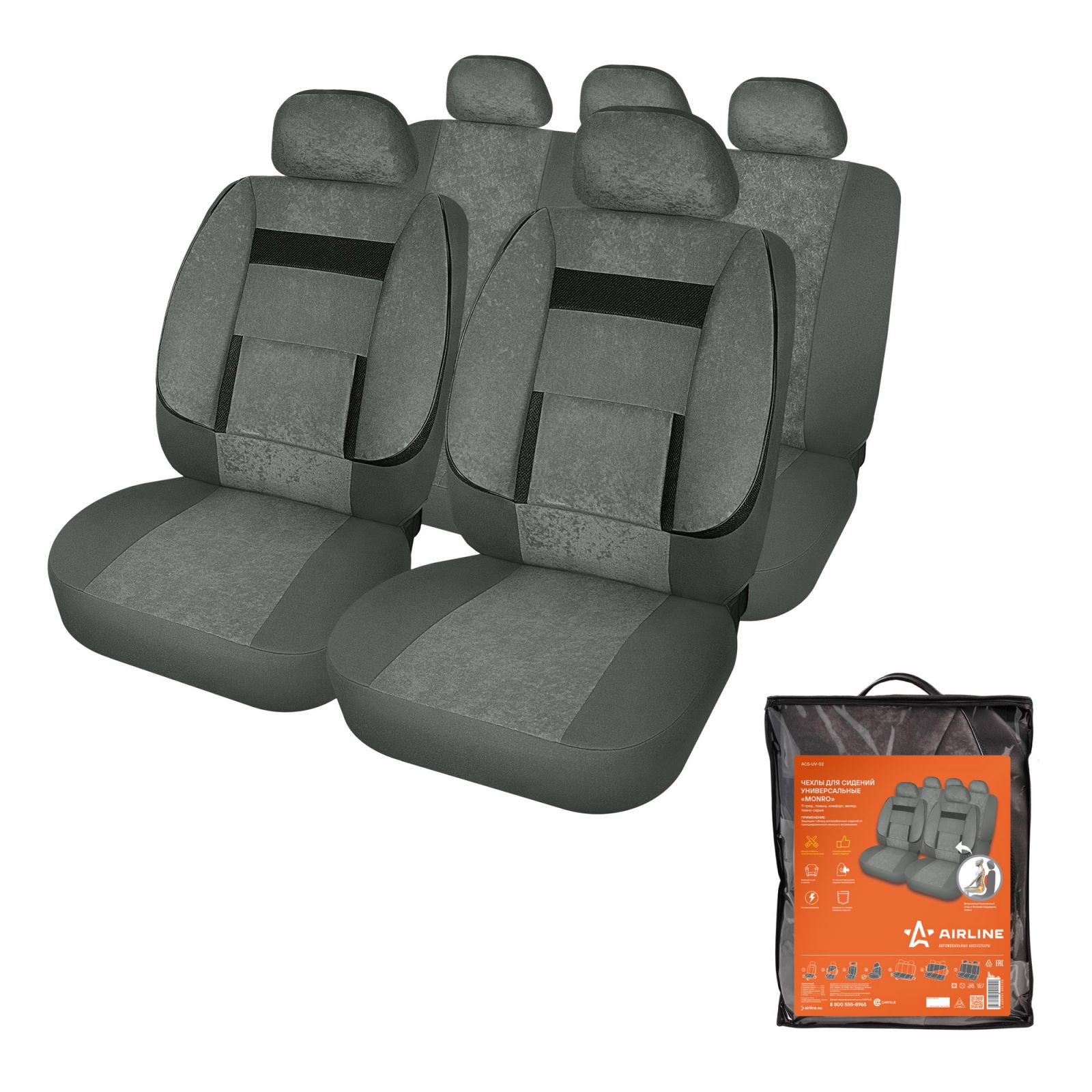 Чехлы для сидений универсальные "MONRO", 11 пред., повыш. комфорт, велюр, темно-сер. (ACS-UV-02)