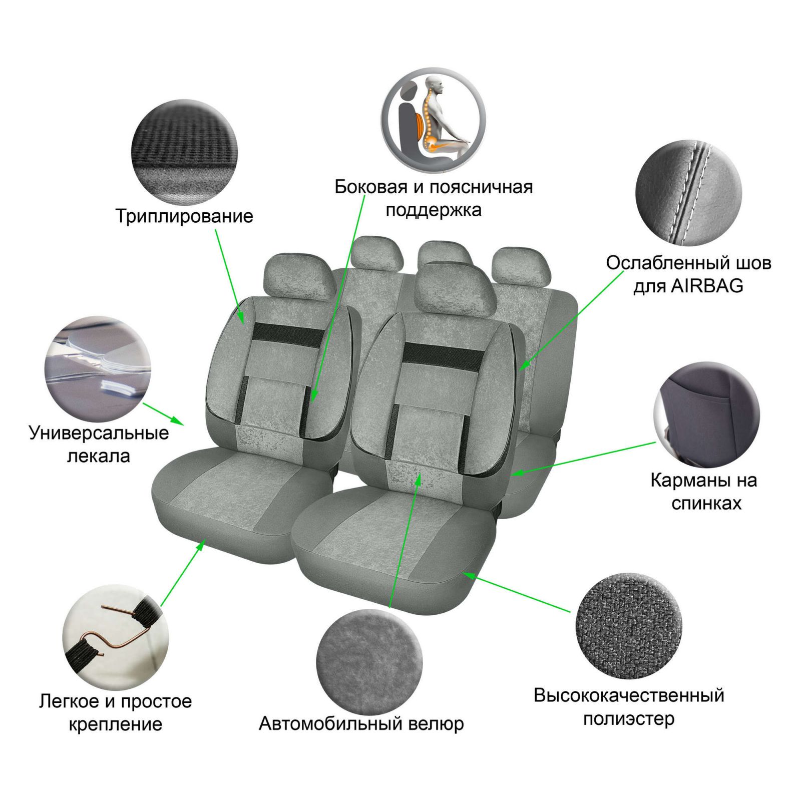Накидка "Алькантара", задняя (3 предмета), серая, универсальная (ASC-B-02)