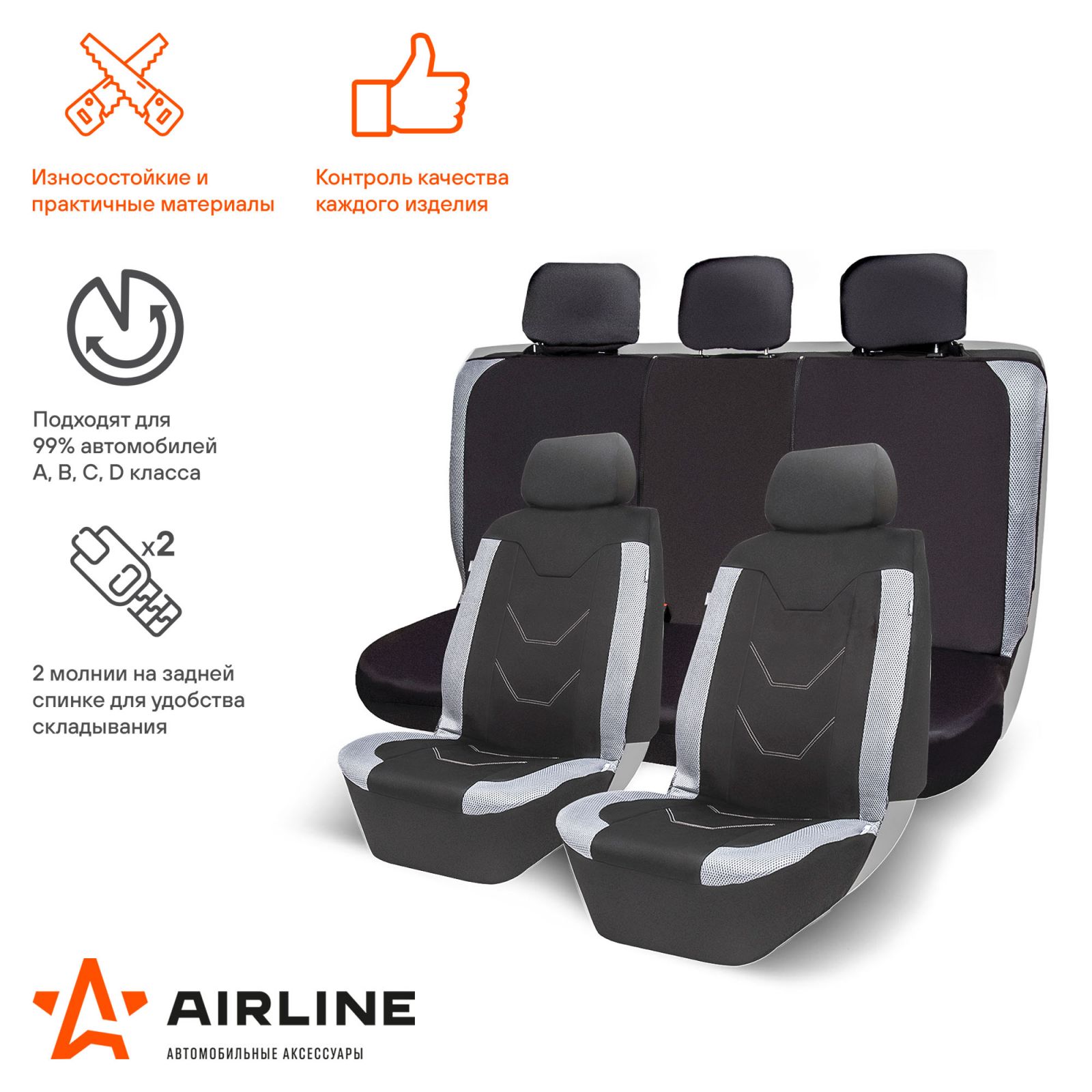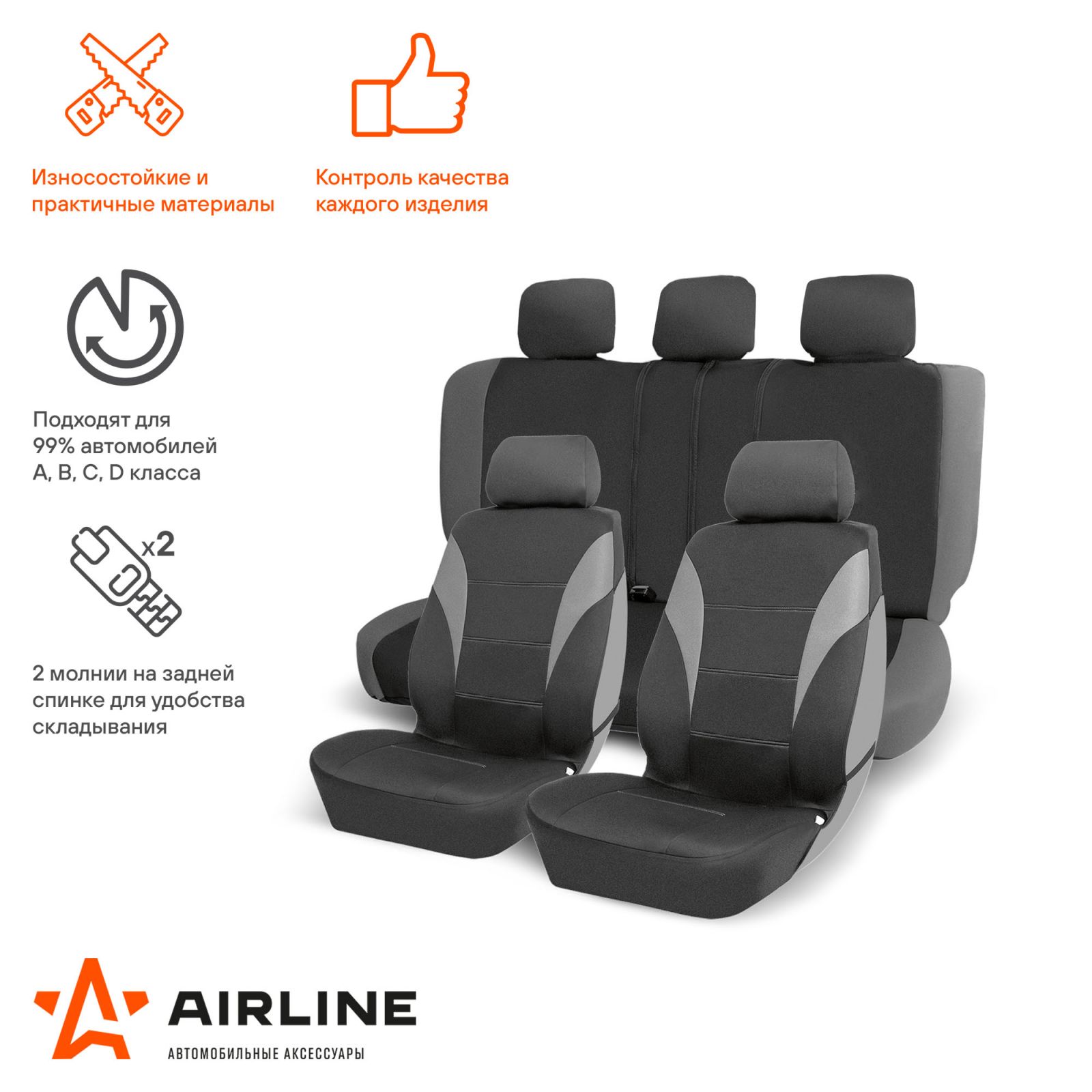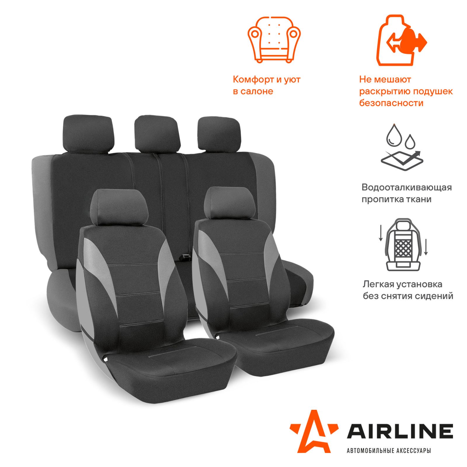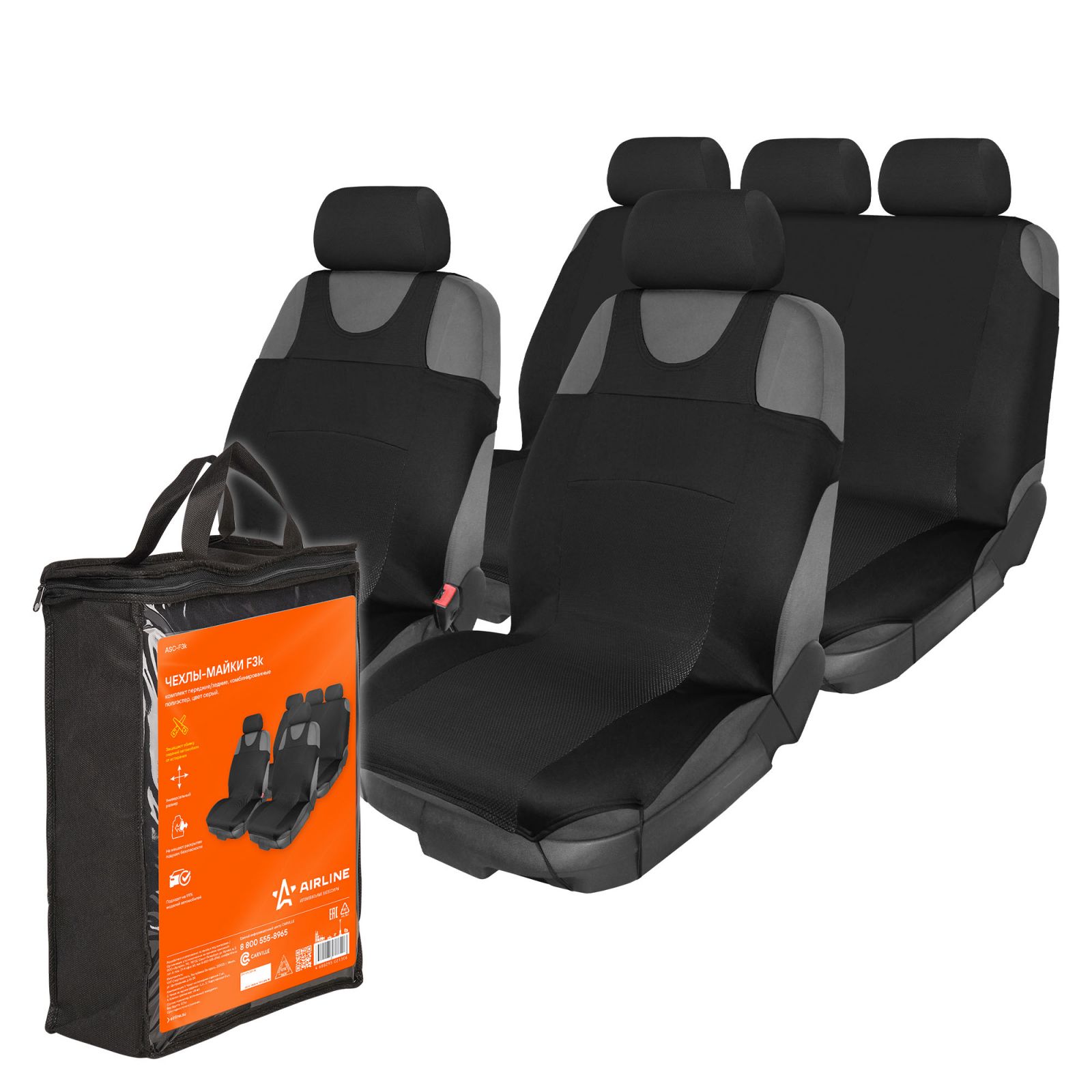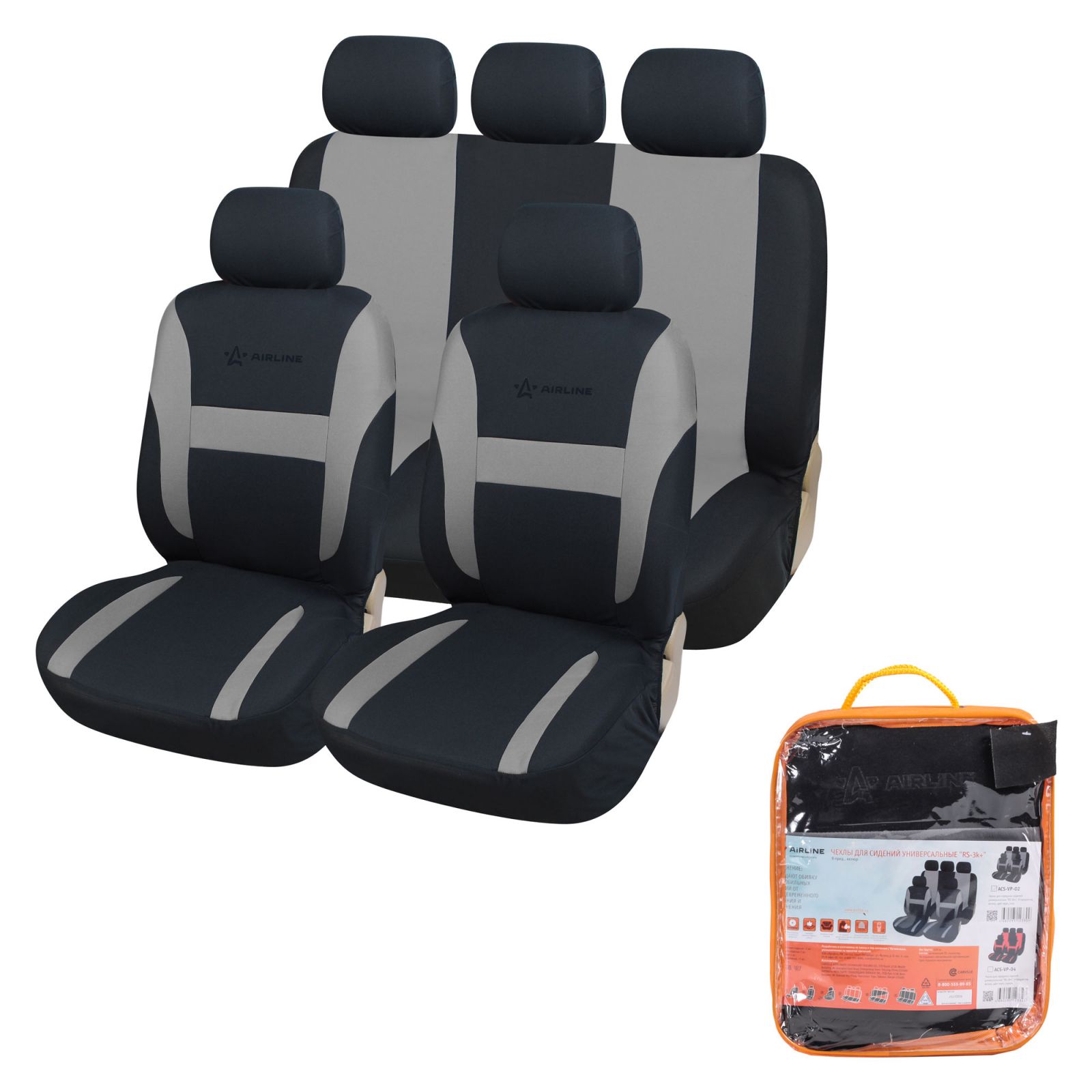 Чехлы для сидений универсал. "RS-5k+", передн./задн.(8 предм.), влагозащит. полиэстер, черн./сер.(ADCC001)