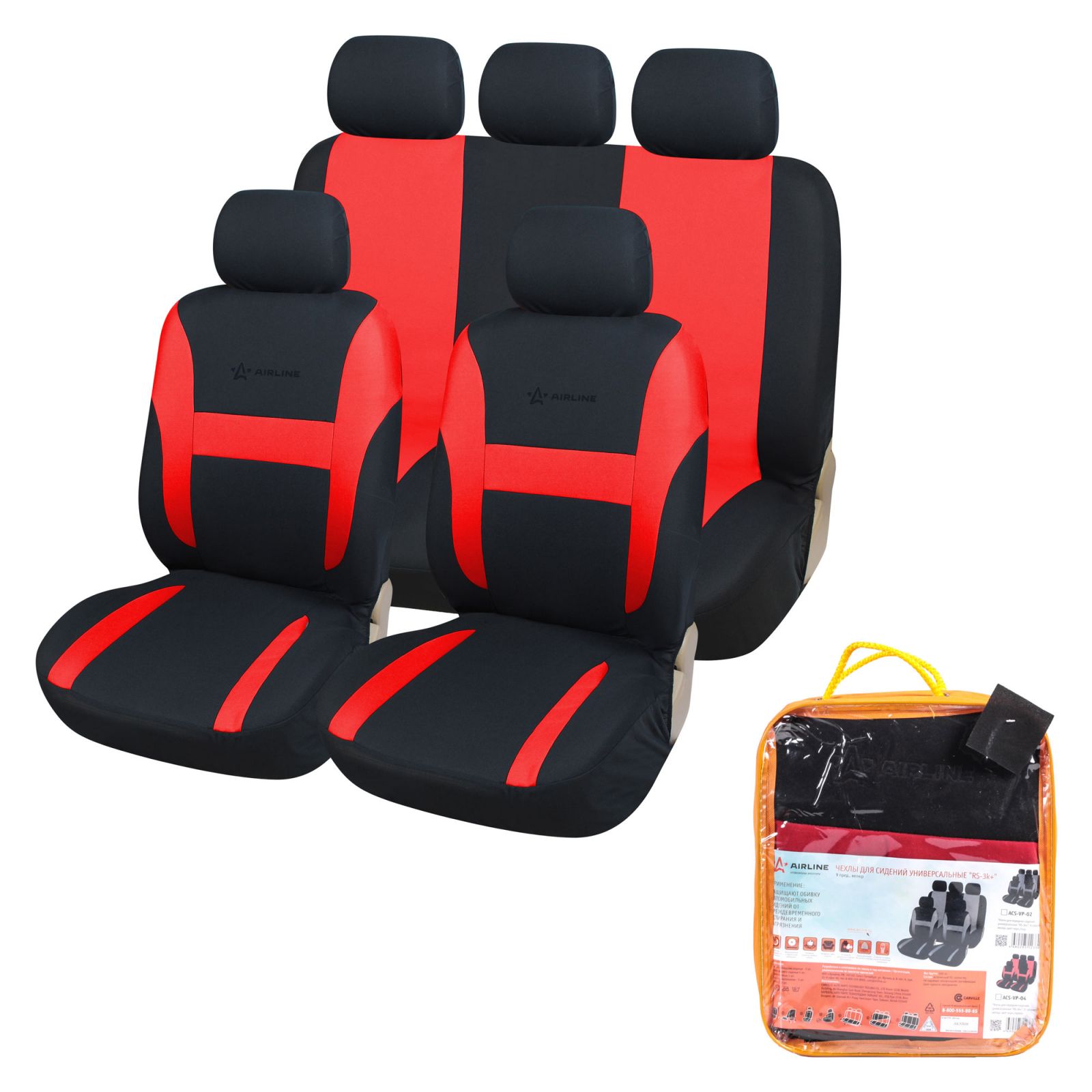 Чехлы для сидений универсал. "RS-1k", передн./задн.(9 предм.), полиэстер, черн./красн. (ACS-PP-05)