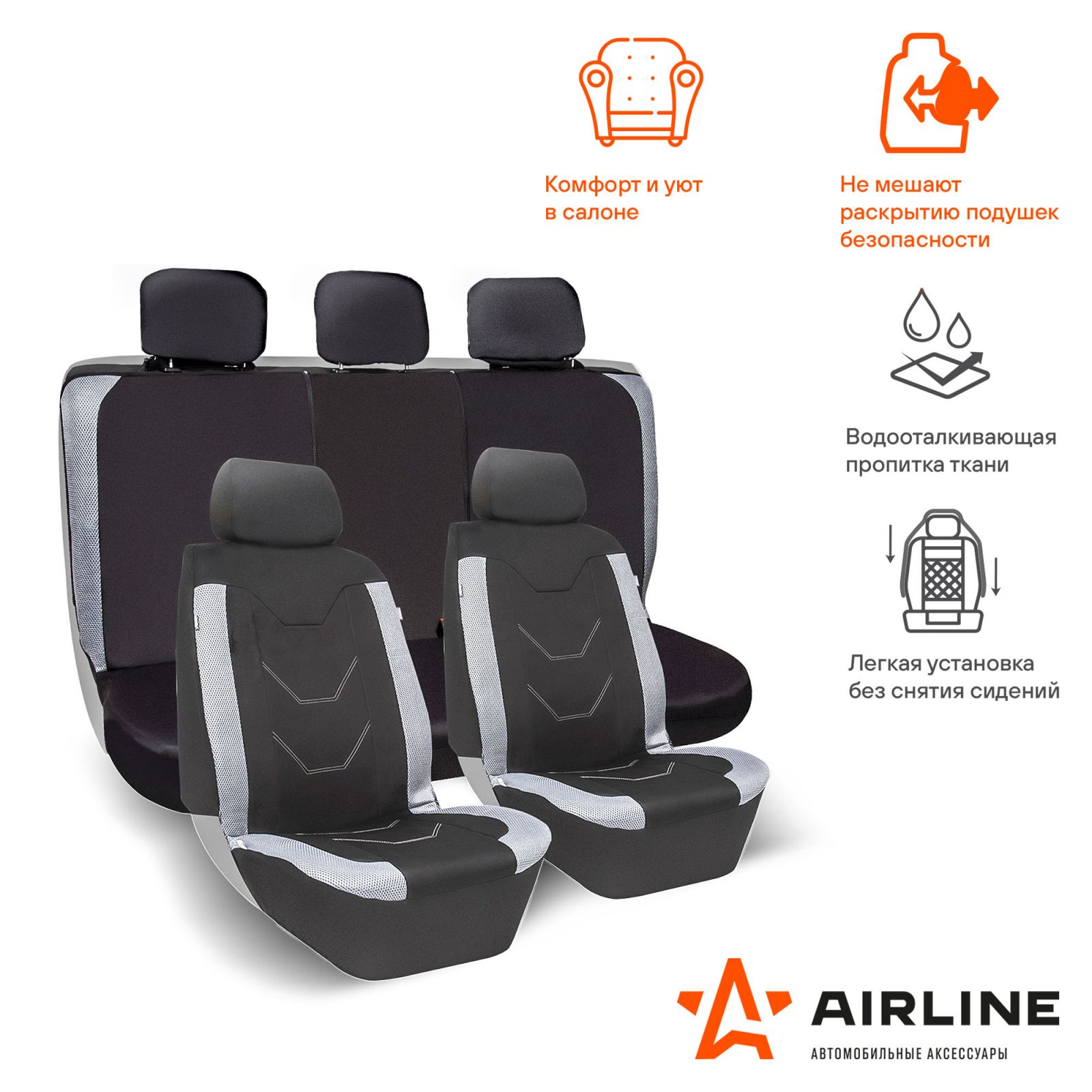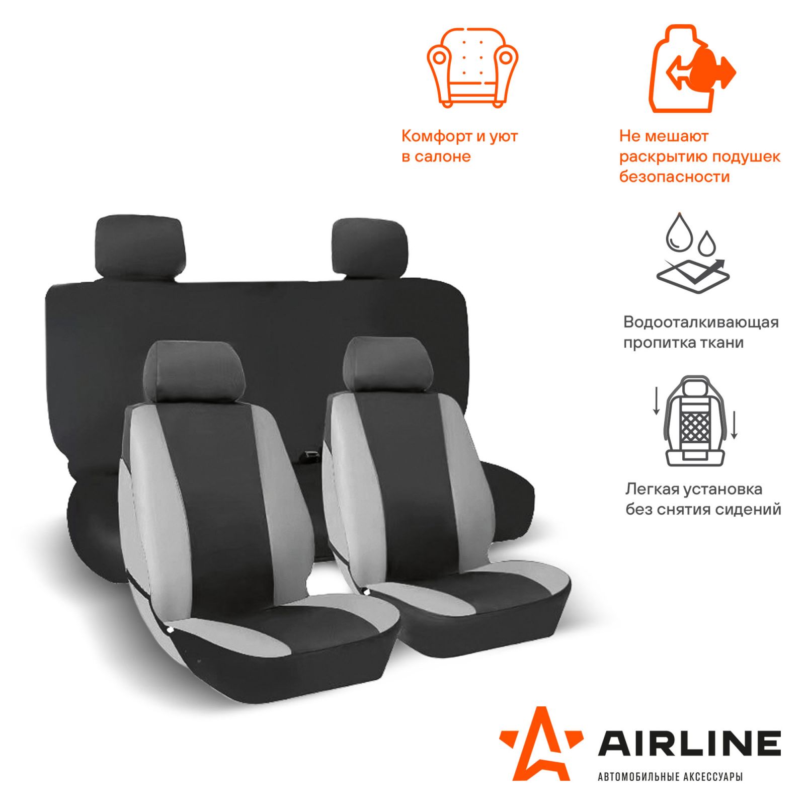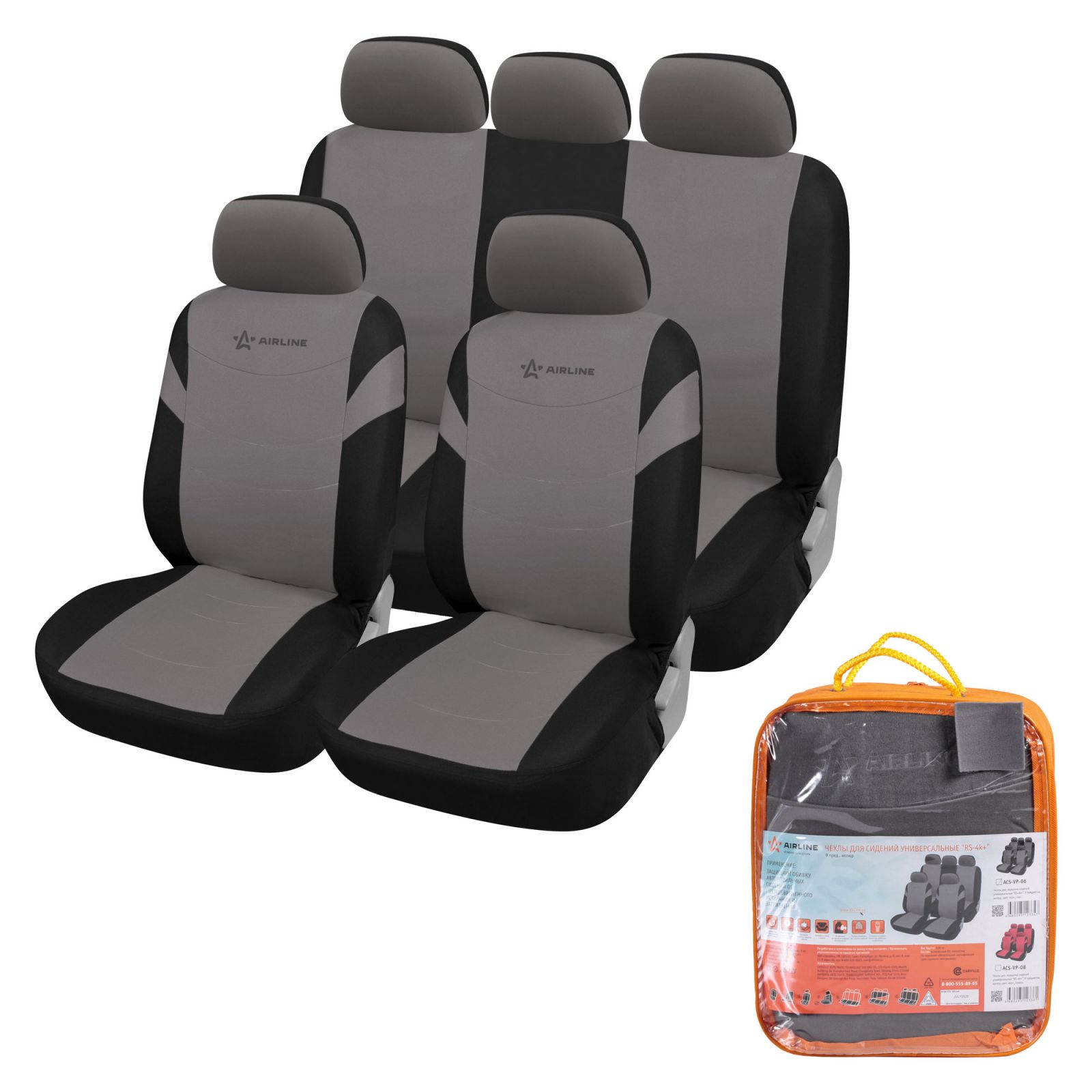 Чехлы для сидений универсал. "RS-6k+", передн./задн.(8 предм.), влагозащит. полиэстер, черн./сер.(ADCC002)
