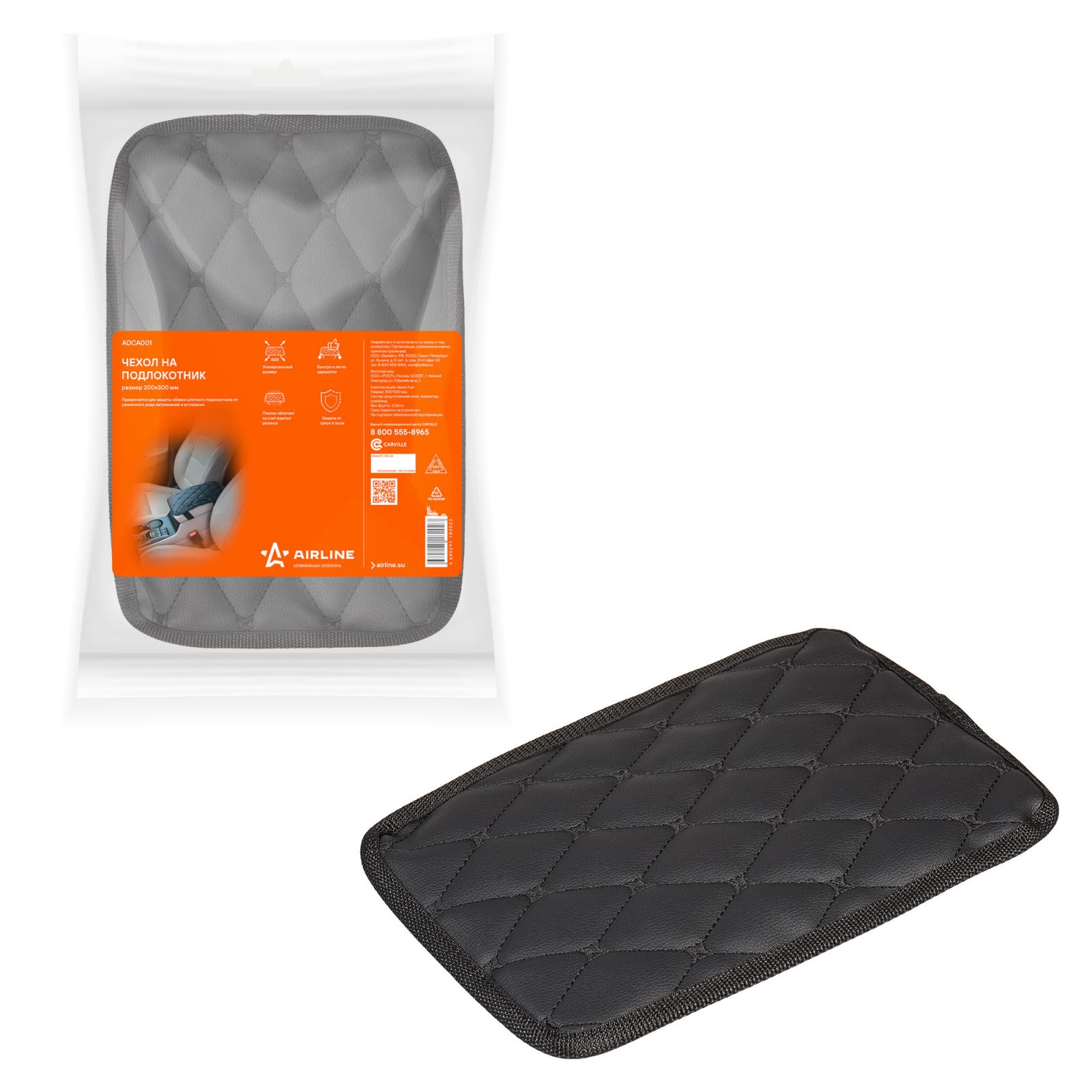 Чехол на подлокотник, универсальный, 200*300 мм, стёганная экокожа, цвет черный (ADCA001)