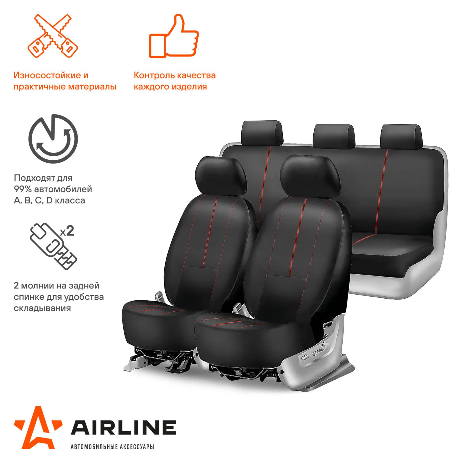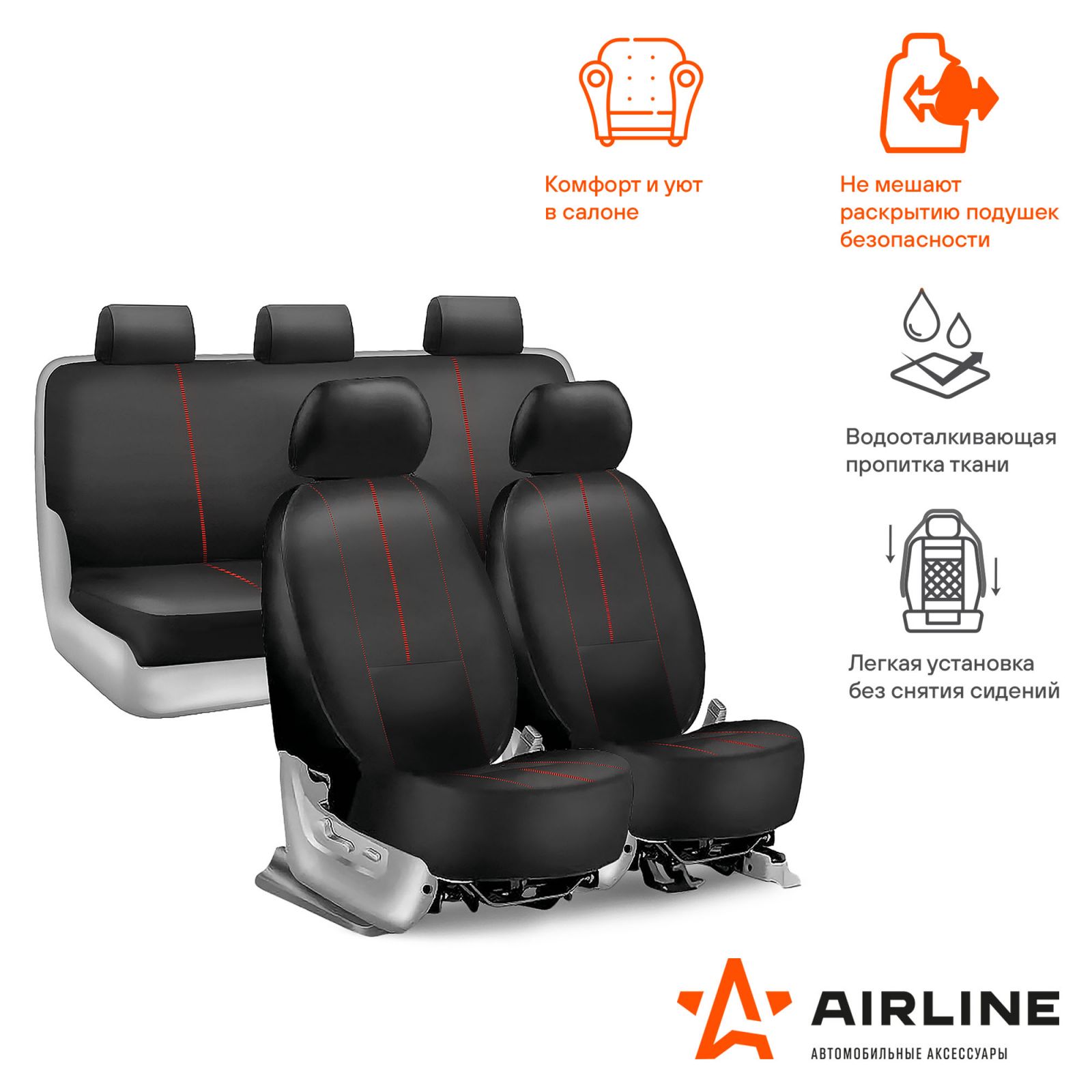 Чехлы для сидений универсал. "RS-9k+", передн./задн.(8 предм.), влагозащит. полиэстер, черн./красн.(ADCS005)