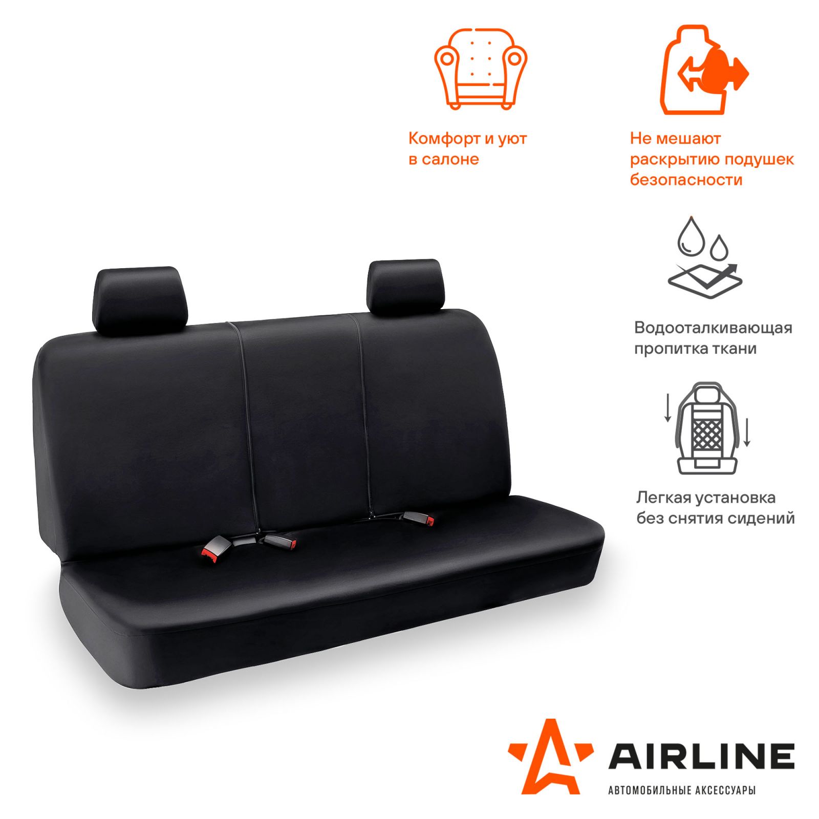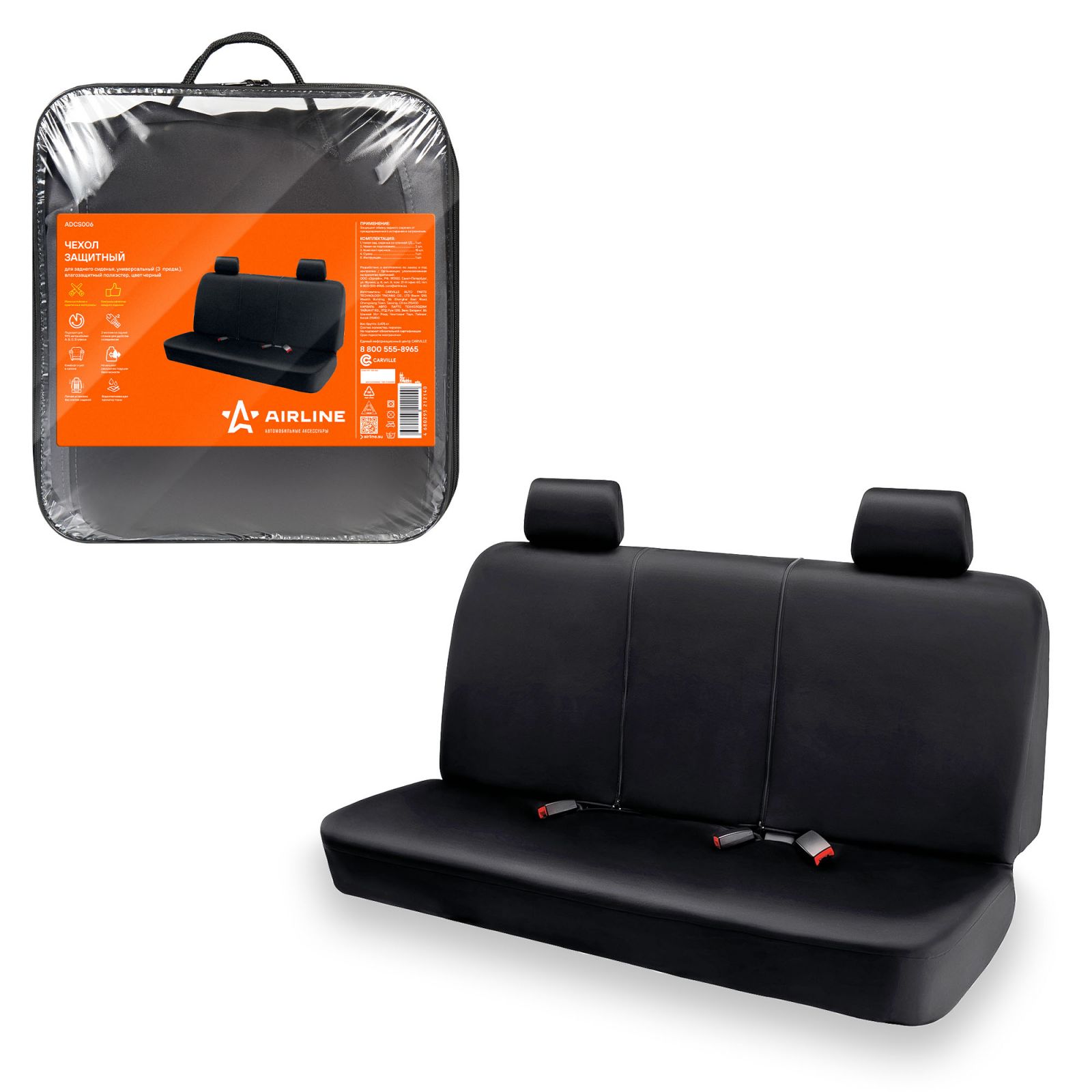 Чехол защитный для задн.сиденья, универсал.(3 предм.), влагозащит. полиэстер, черный (ADCS006)