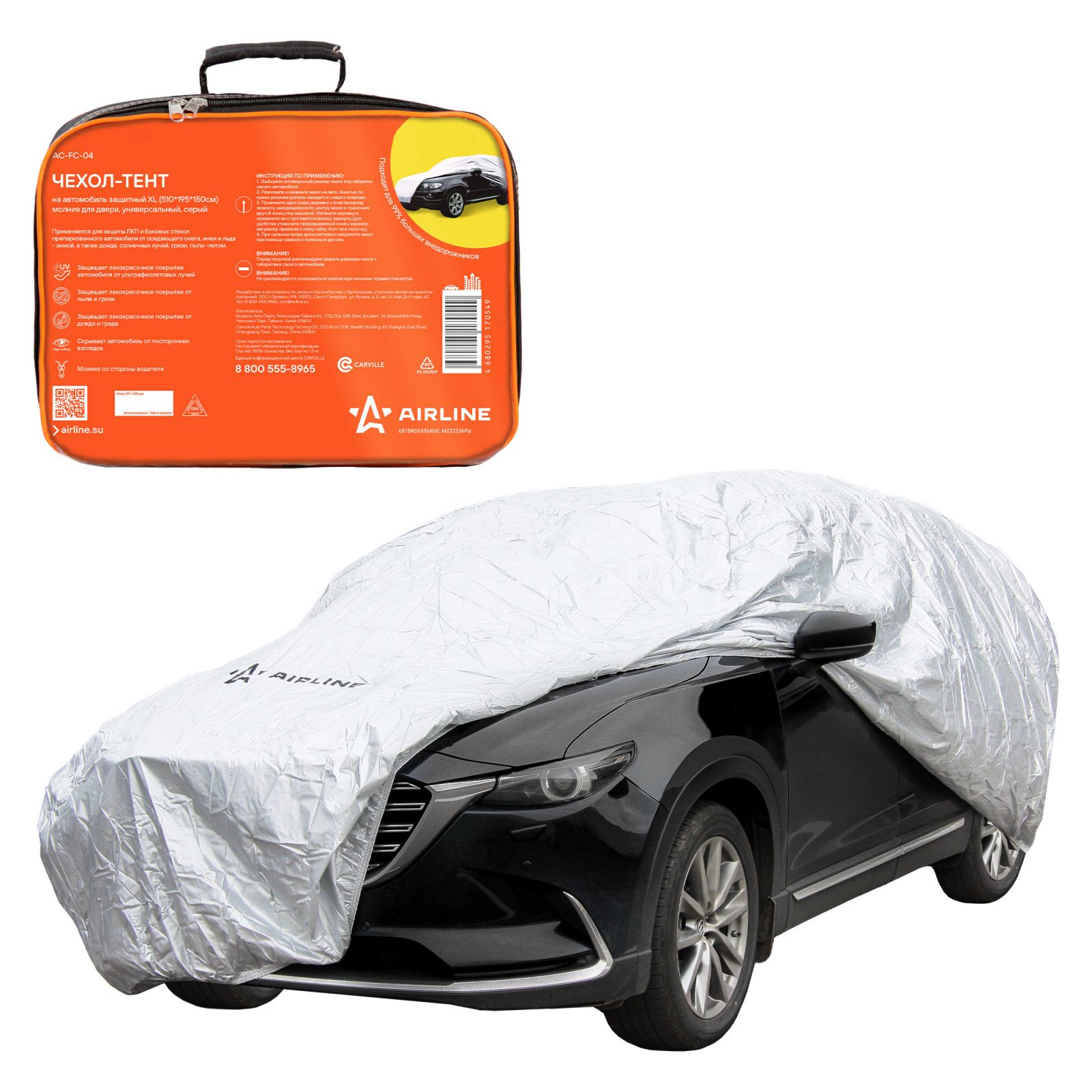 Чехол-тент на автомобиль защитный, XL(510*195*150см) молния для двери, универсал., серый (AC-FC-04)