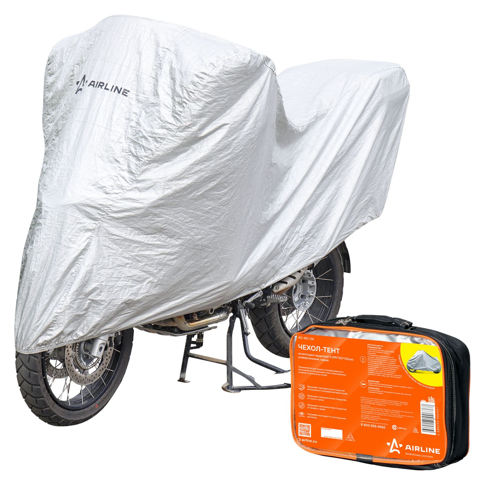 Чехол-тент на мотоцикл защитный, S(195х100х120см), универсал.,серый (AC-MC-04)