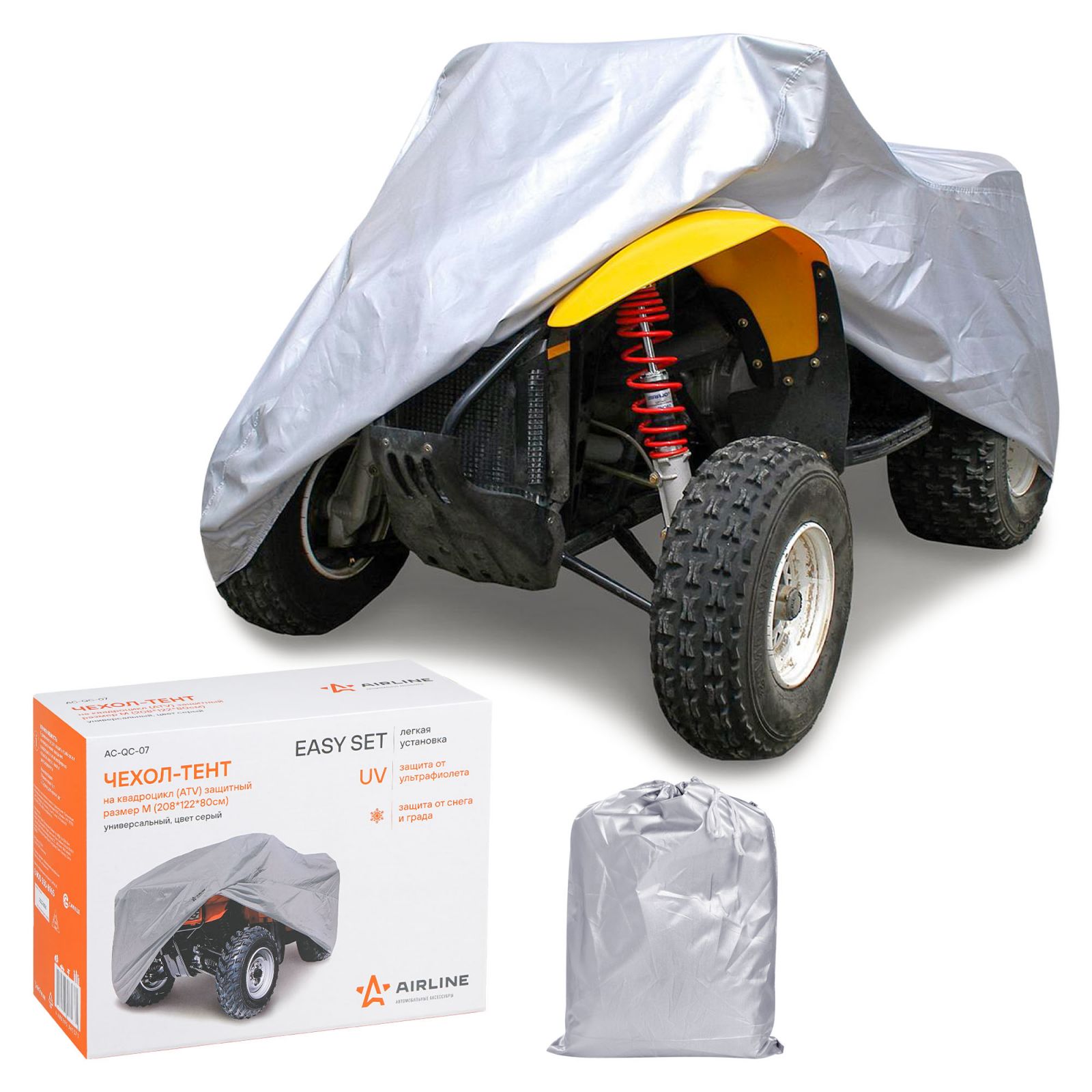 Чехол-тент на квадроцикл защитный, размер М (208*122*80см), цвет серый, универсальный(AC-QC-07)
