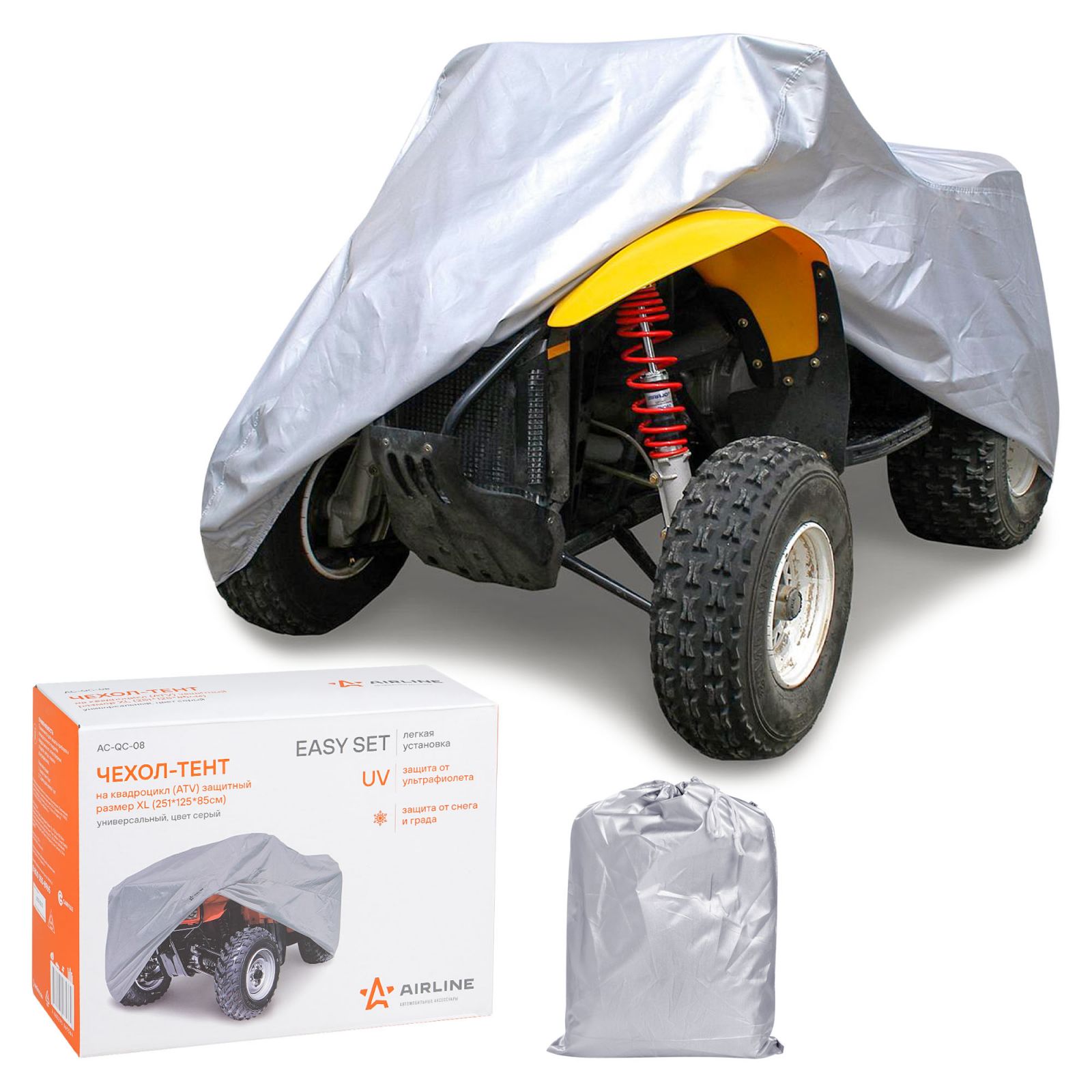 Чехол-тент на квадроцикл защитный, размер XL (251*125*85см), цвет серый, универсальный(AC-QC-08)
