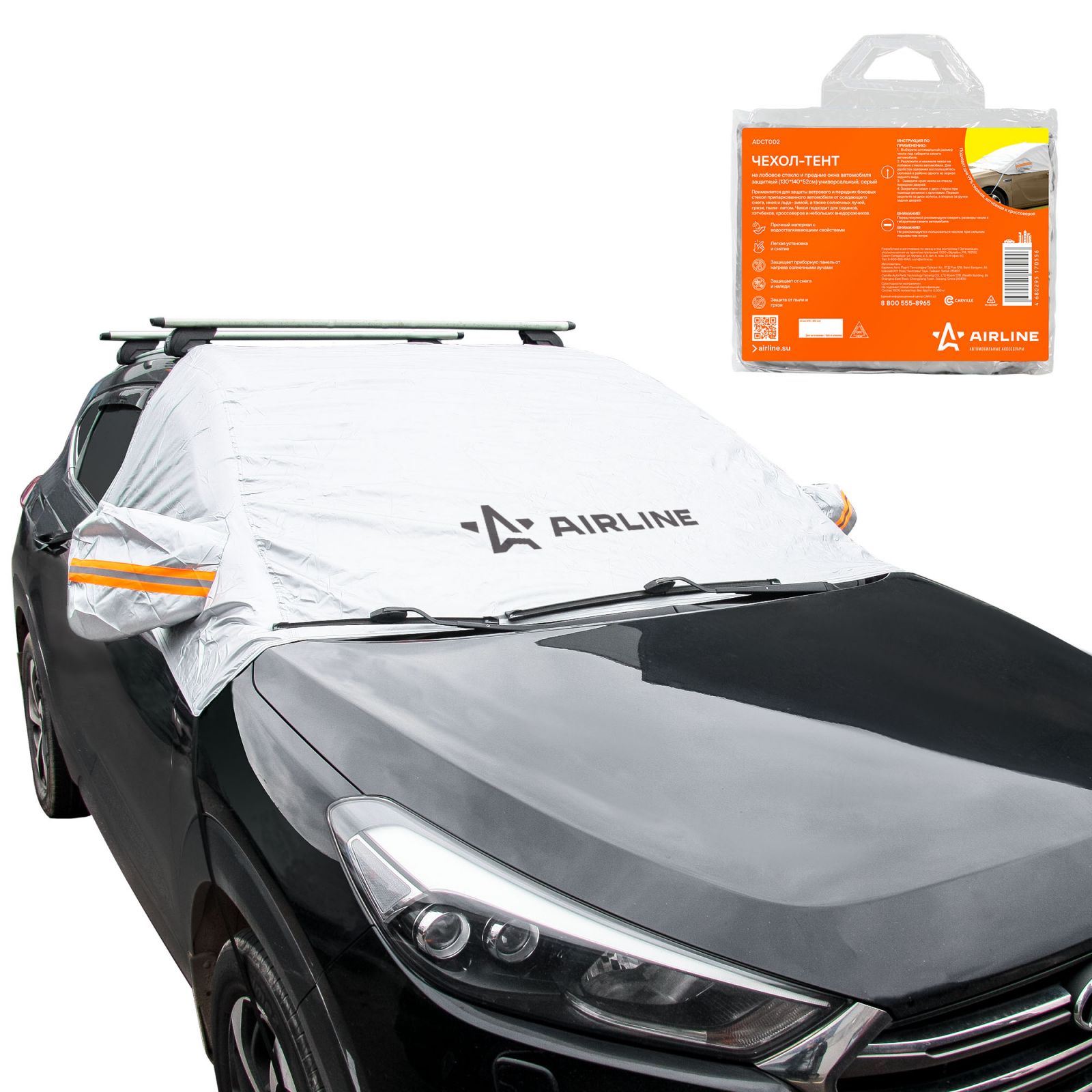 Чехол-тент на лоб.стекло и перед.окна авто, защитный (130*140*52 см) универсал., серый (ADCT002)