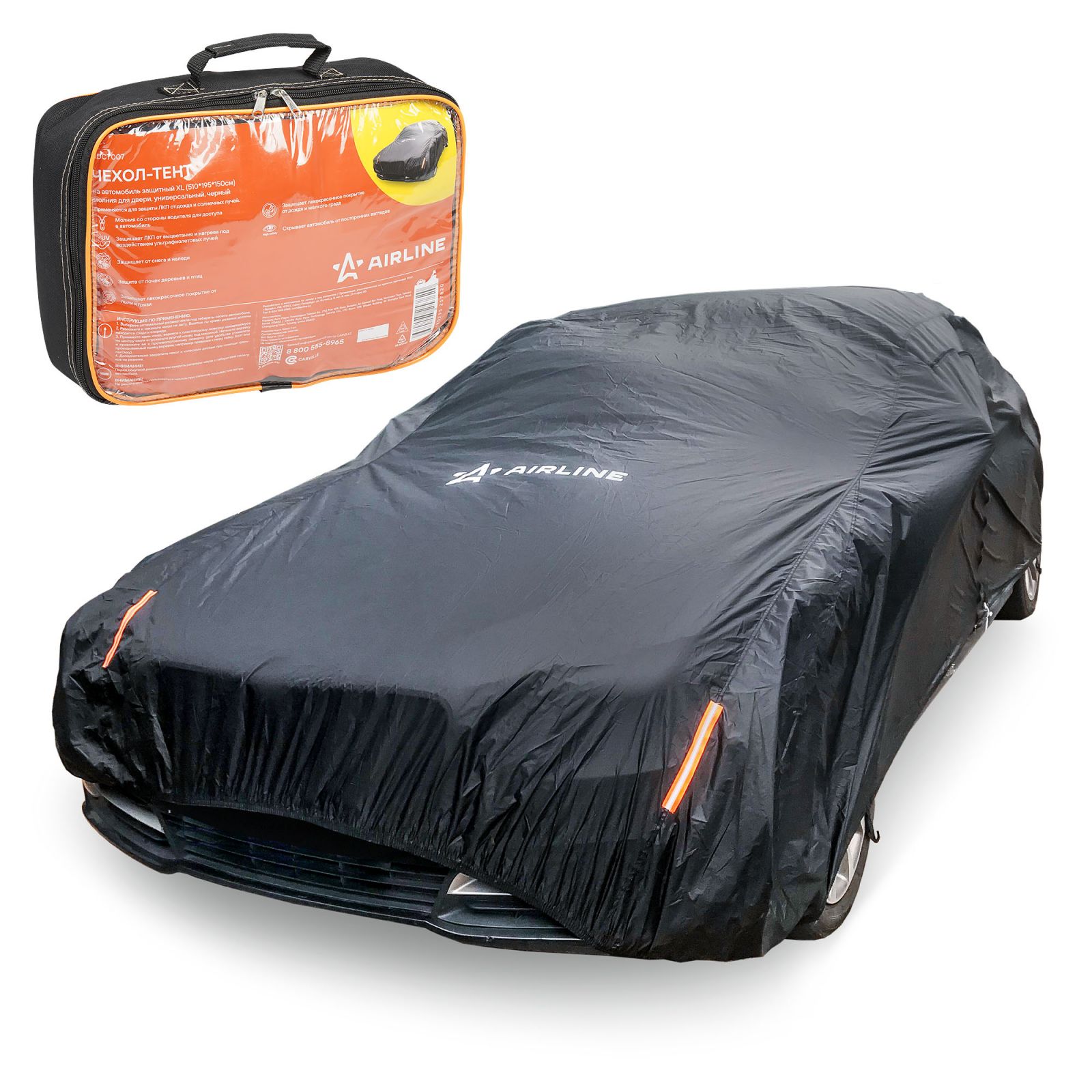 Чехол-тент на автомобиль защитный XL (510*195*150 см) молния для двери, универсал., черный (ADCT007)