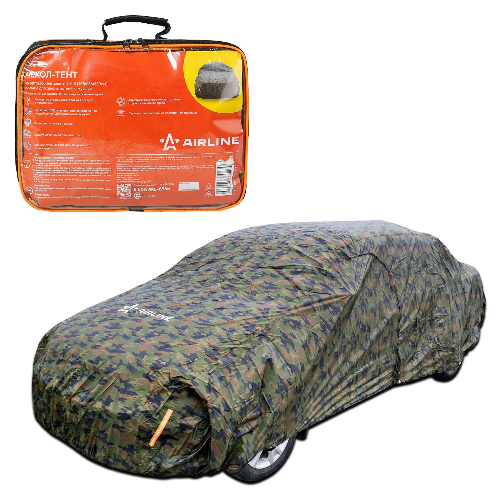 Чехол-тент на автомобиль защитный, S (455х186х120см) молния для двери, летний камуфляж (ADCT008)