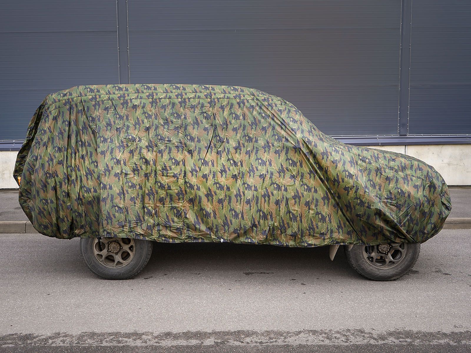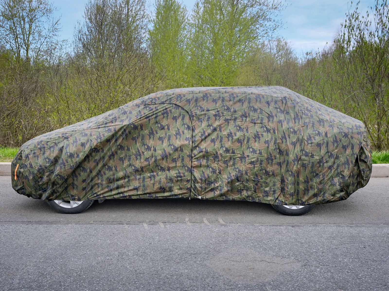 Чехол-тент на автомобиль защитный, M (495х195х120см) молния для двери, летний камуфляж (ADCT009)