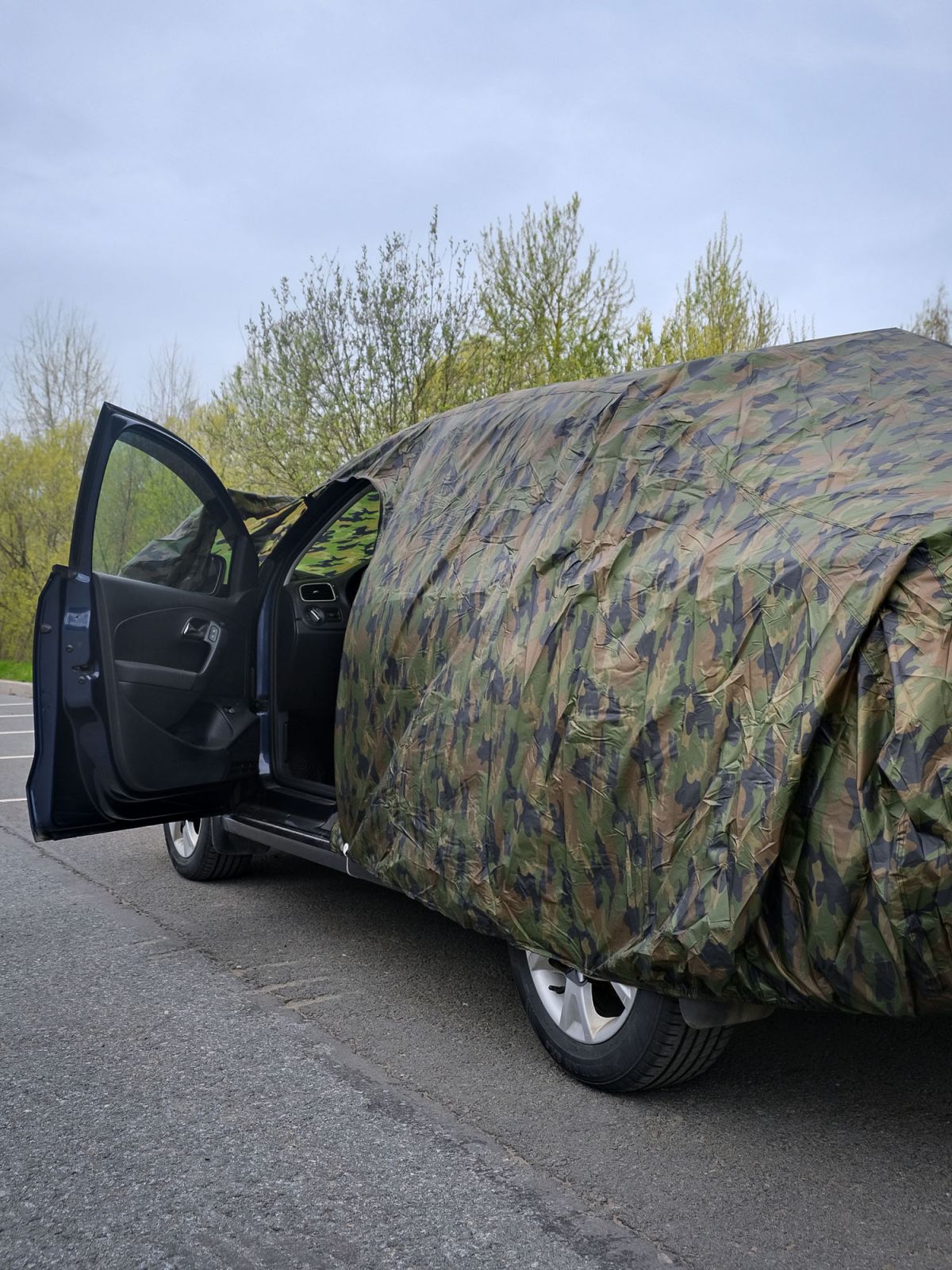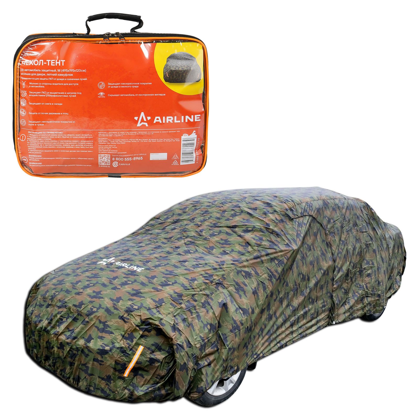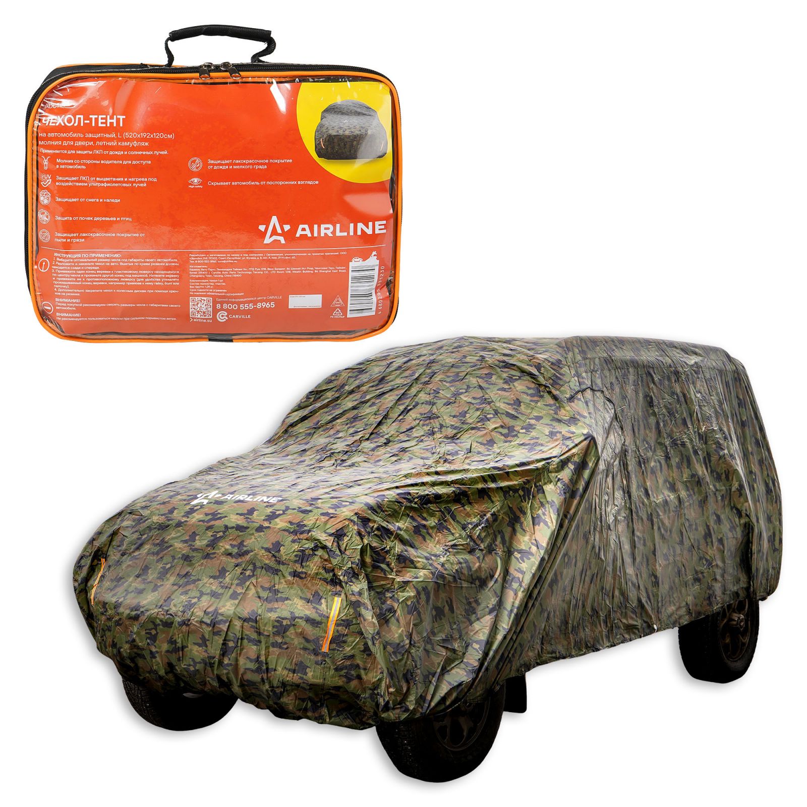 Чехол-тент на автомобиль защитный, XL(500*195*160см), молния для двери, летний камуфляж (ADCT011)