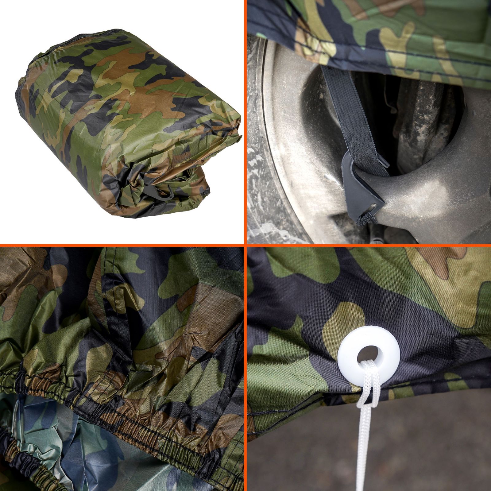 Чехол-тент на мотоцикл защитный M (225х90х110см), люверс под замок, летний камуфляж (ADMC008)