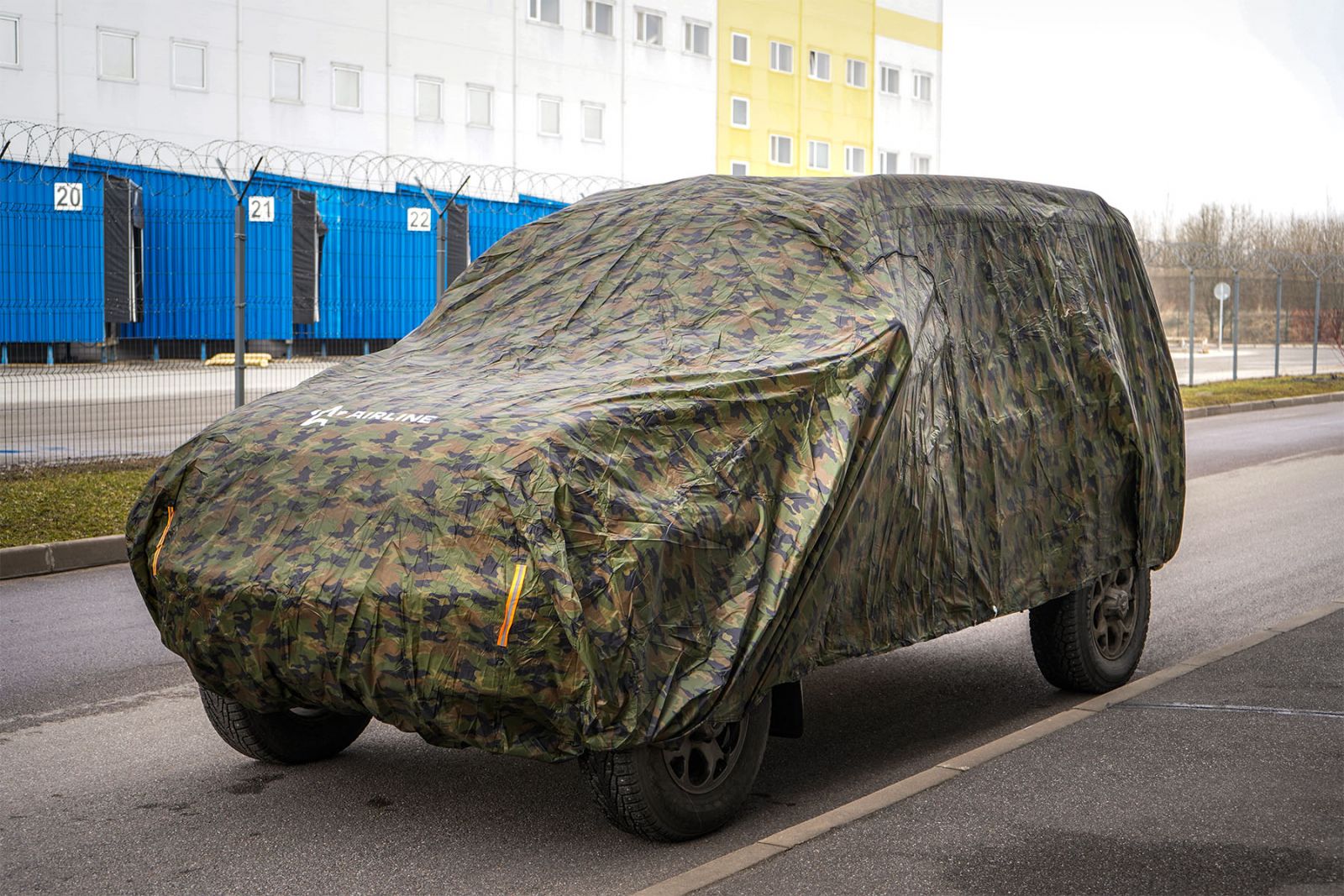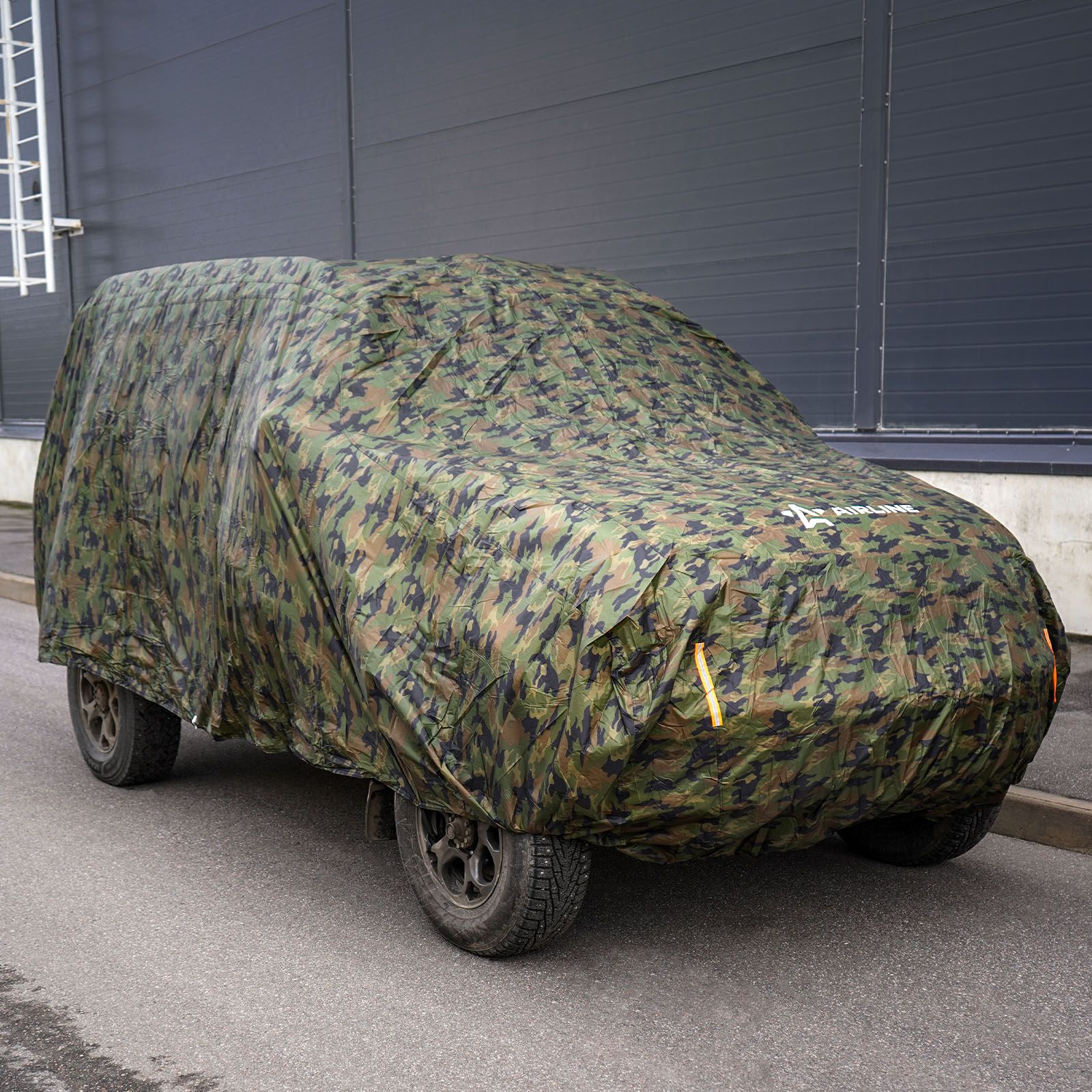 Чехол-тент на автомобиль защитный, L (520х192х120см) молния для двери, летний камуфляж (ADCT010)