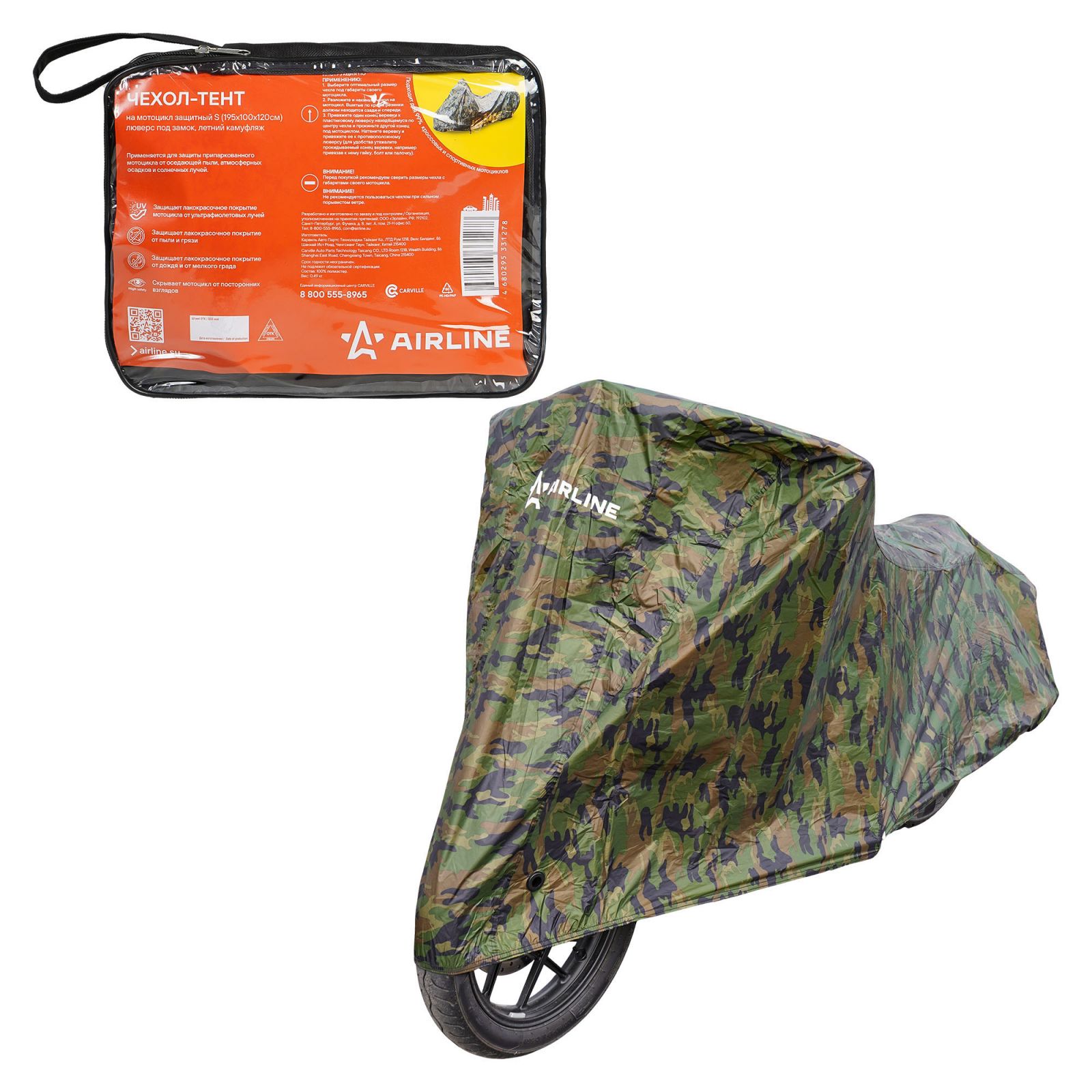 Чехол-тент на мотоцикл защитный S (195х100х120см), люверс под замок, летний камуфляж (ADMC007)