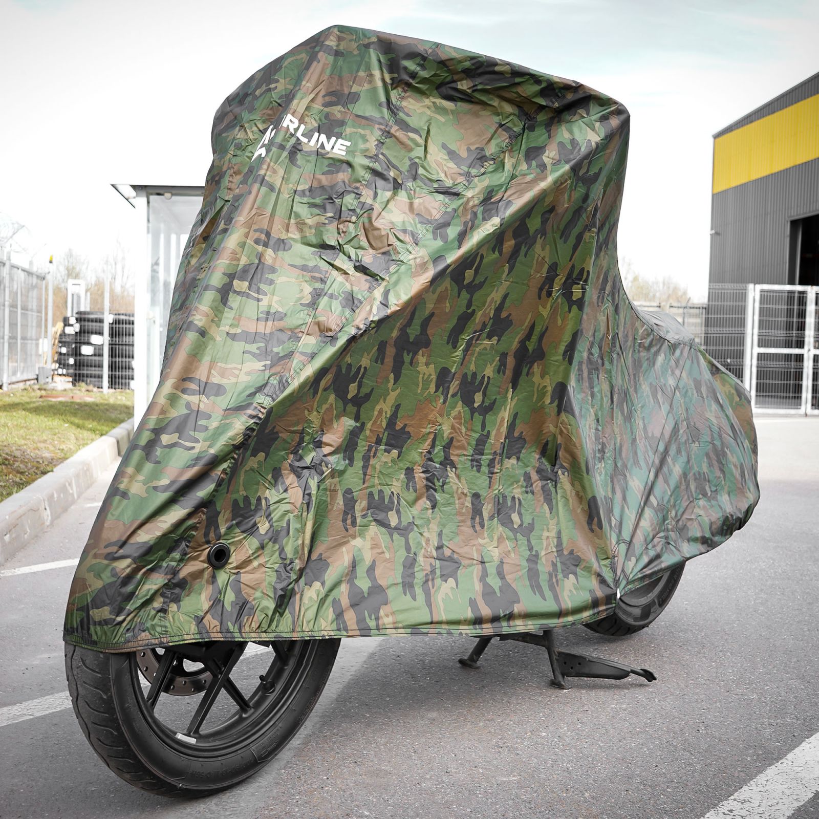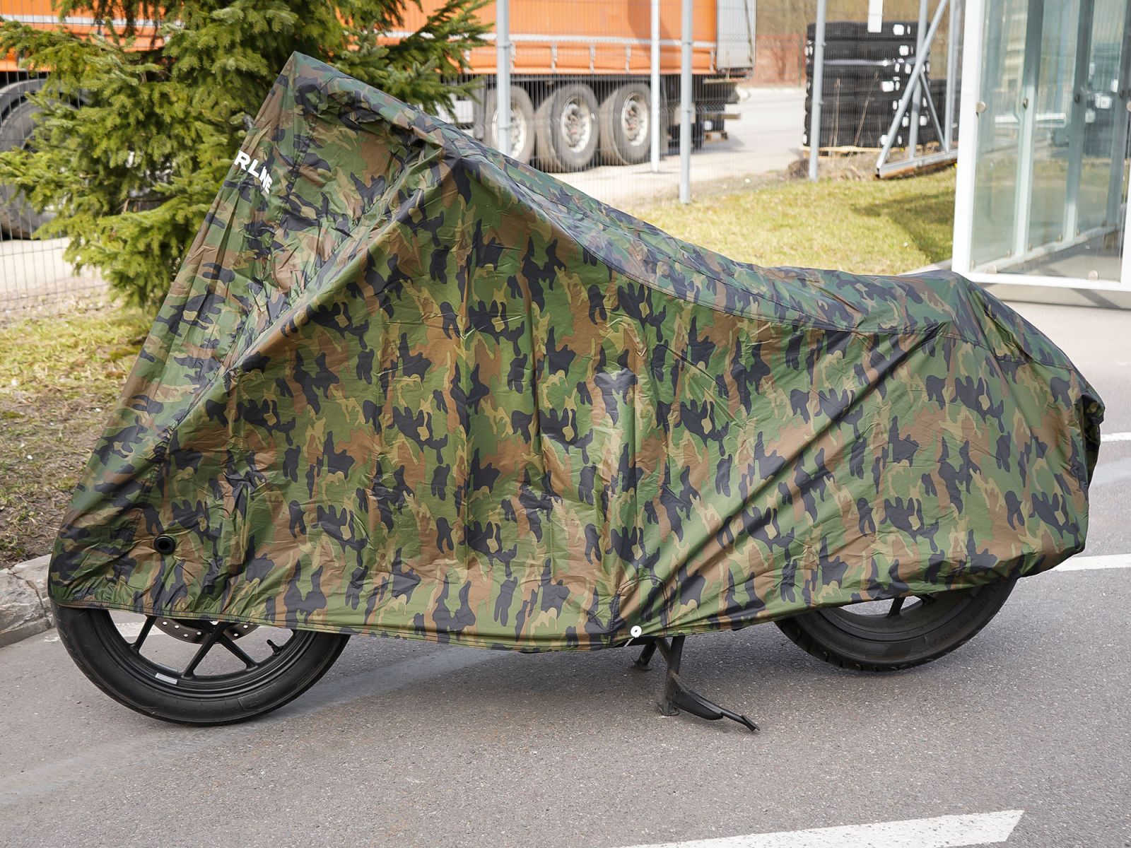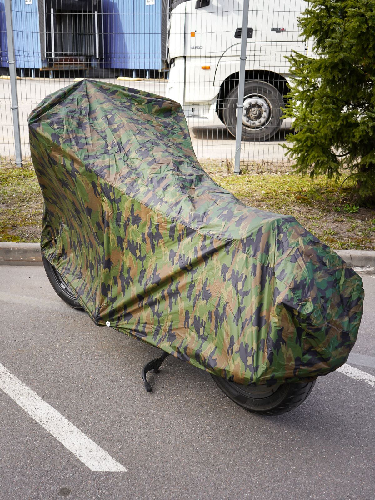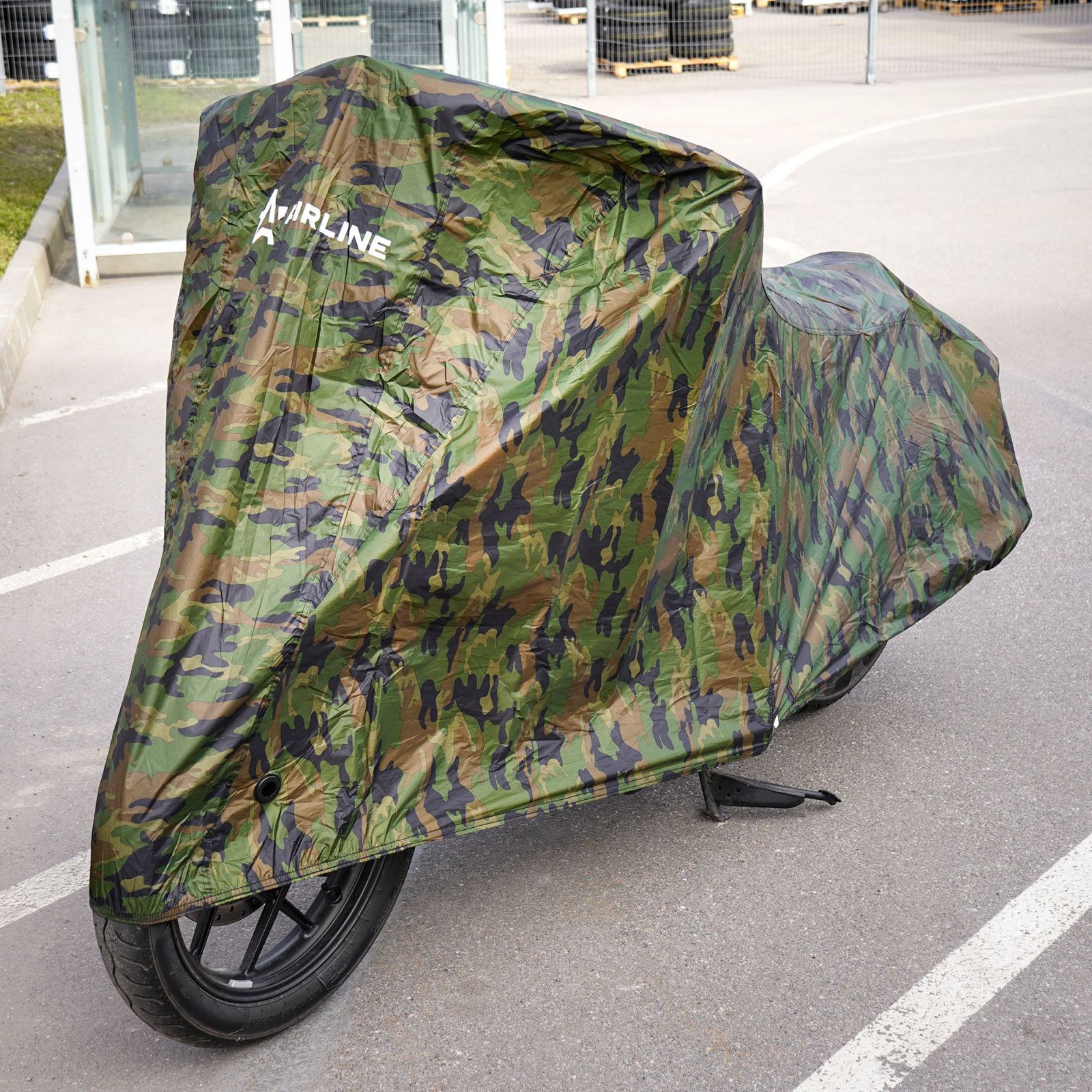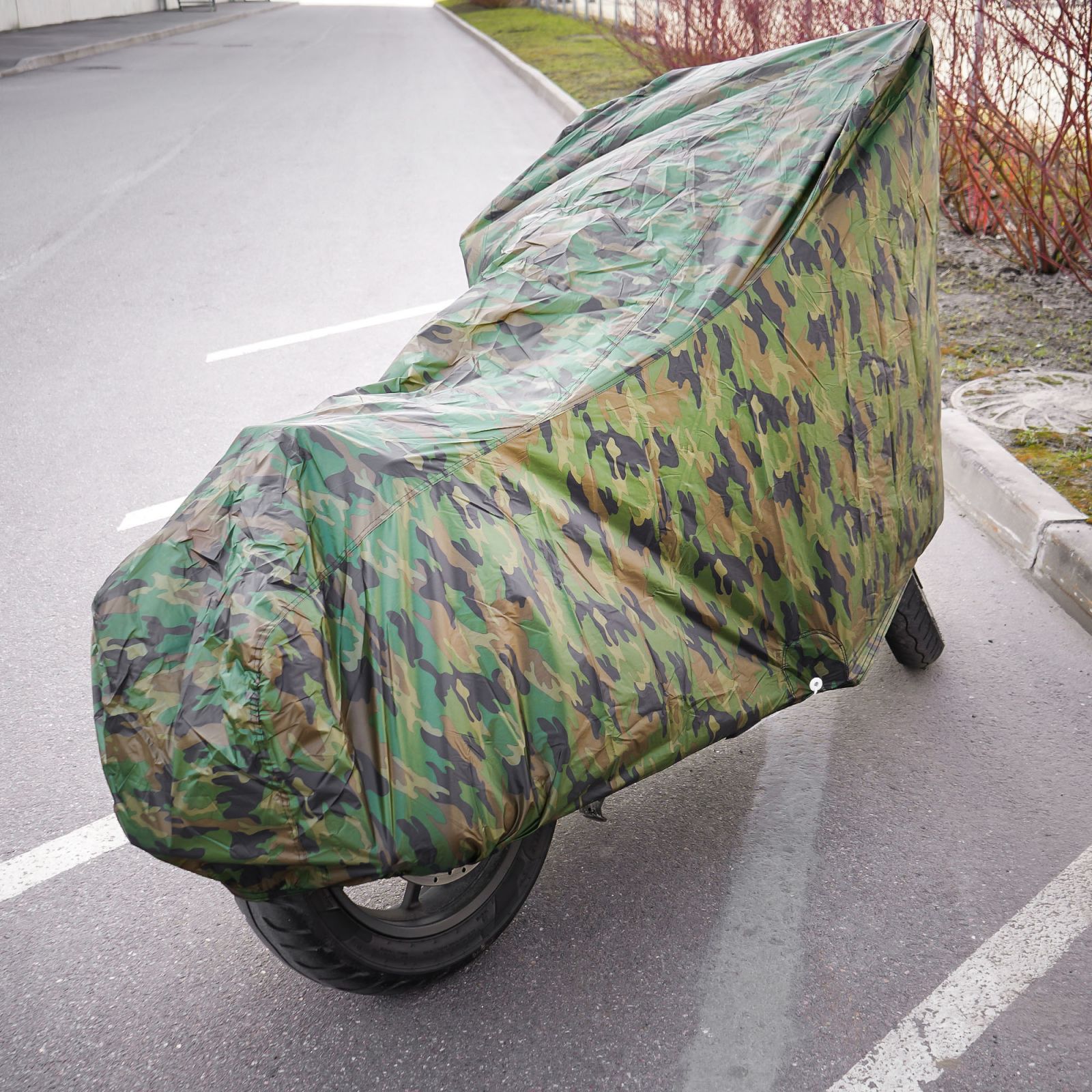 Чехол-тент на мотоцикл защитный L (250х100х120см), люверс под замок, летний камуфляж (ADMC009)