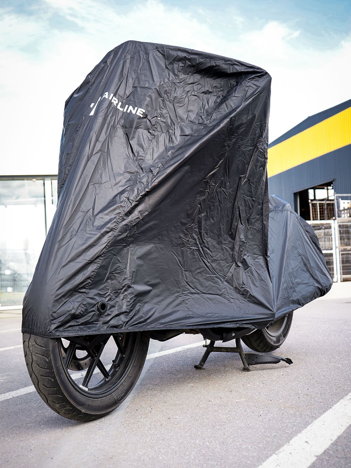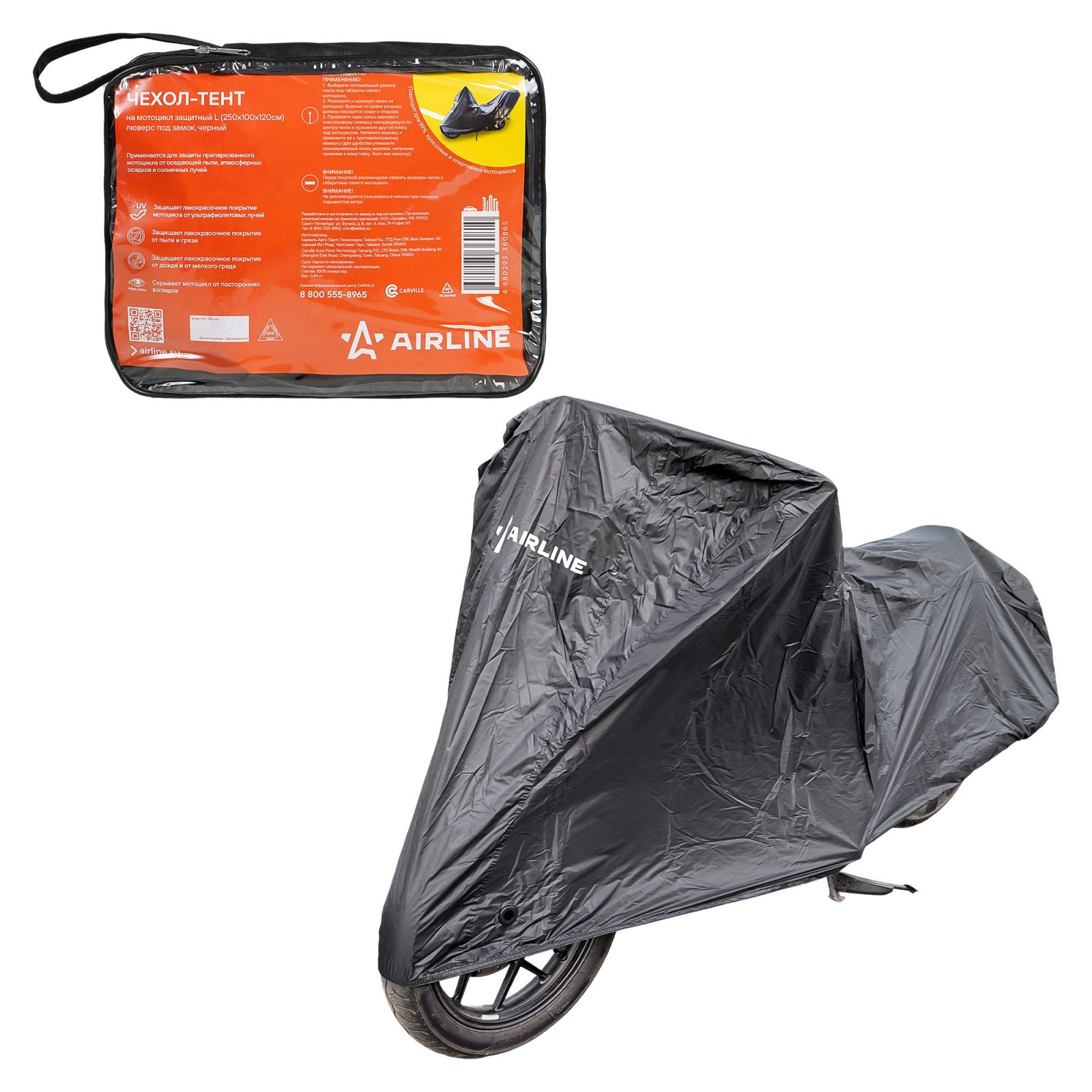Чехол-тент на мотоцикл защитный L (250х100х120см), люверс под замок, черный (ADMC012)