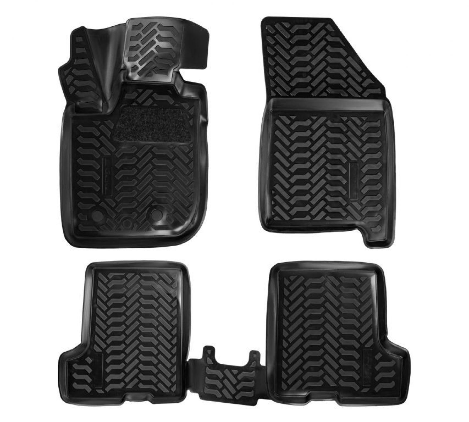 Ковры для VW Polo SD (10-), 4 шт., (крепеж),выс. борт, 3D с подпятником, ТЭП, черн. (ACM-PS-73)