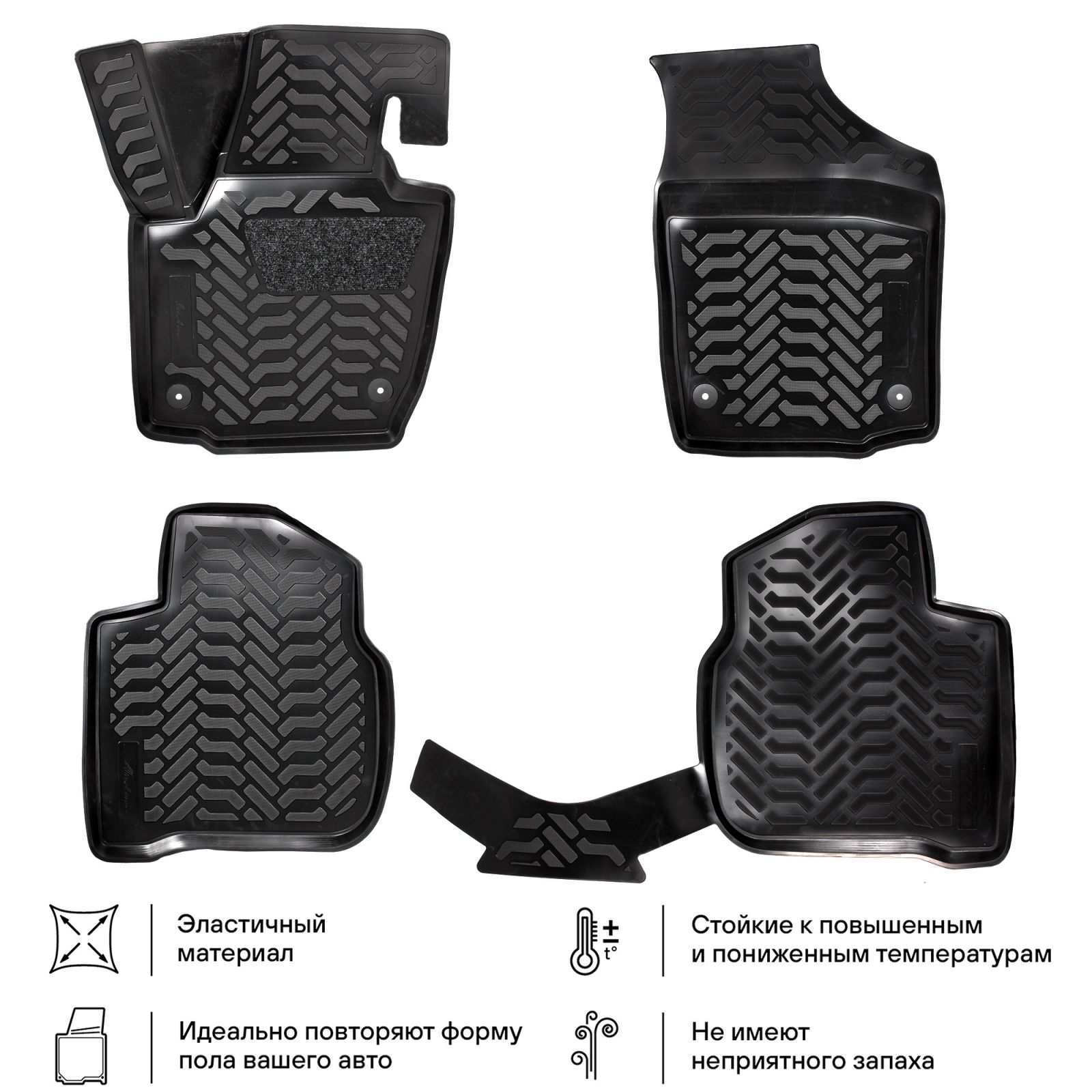 Ковры для VW Polo/ Rapid (20-), 4 шт.,(крепеж),выс. борт, 3D с подпятником, ТЭП, черн. (ACM-PS-94)