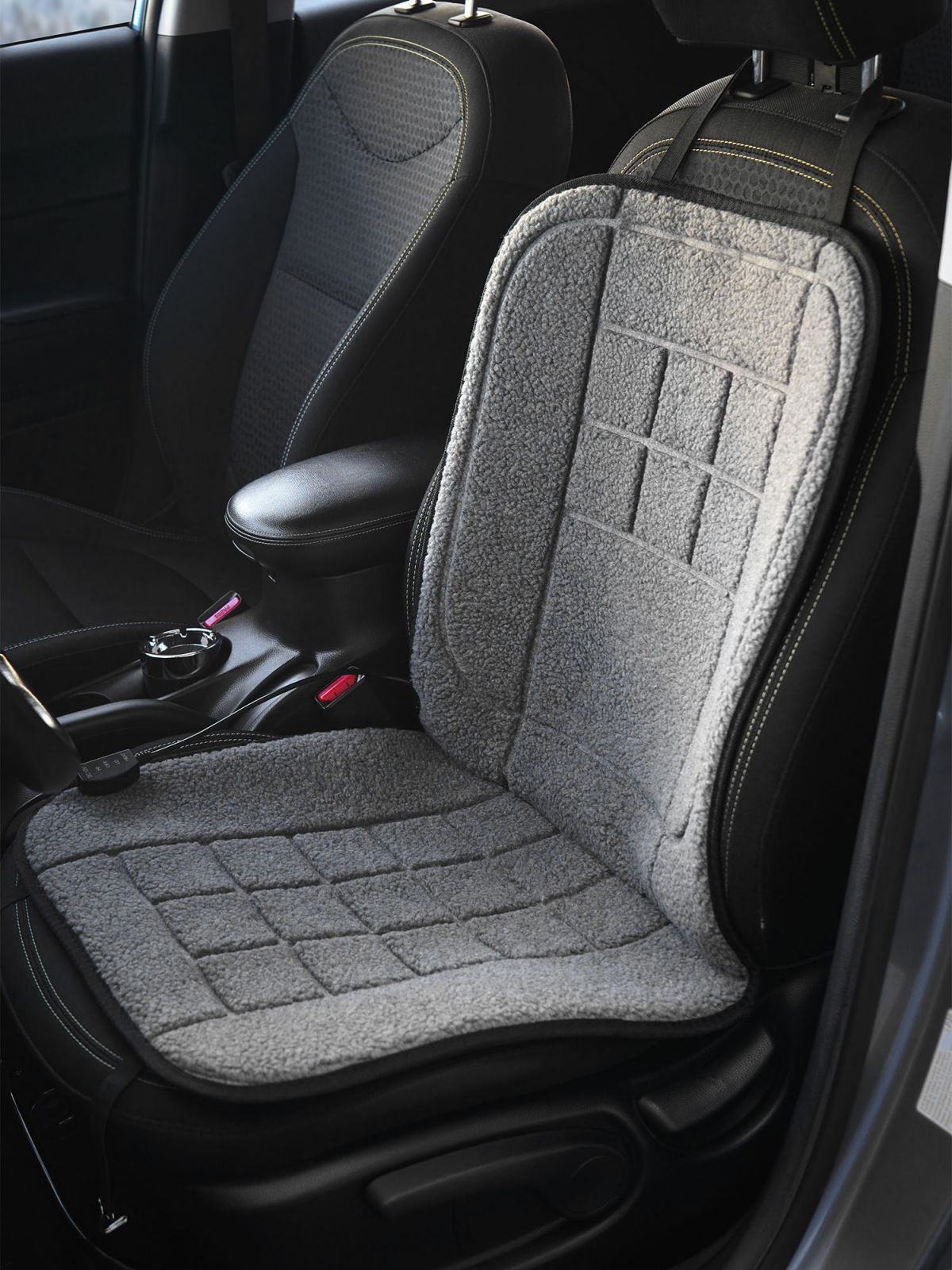 Накидка с подогревом на переднее сиденье 12 В, 35/45Вт, 100*50 см, искусств.мех, серая (ADHC016)