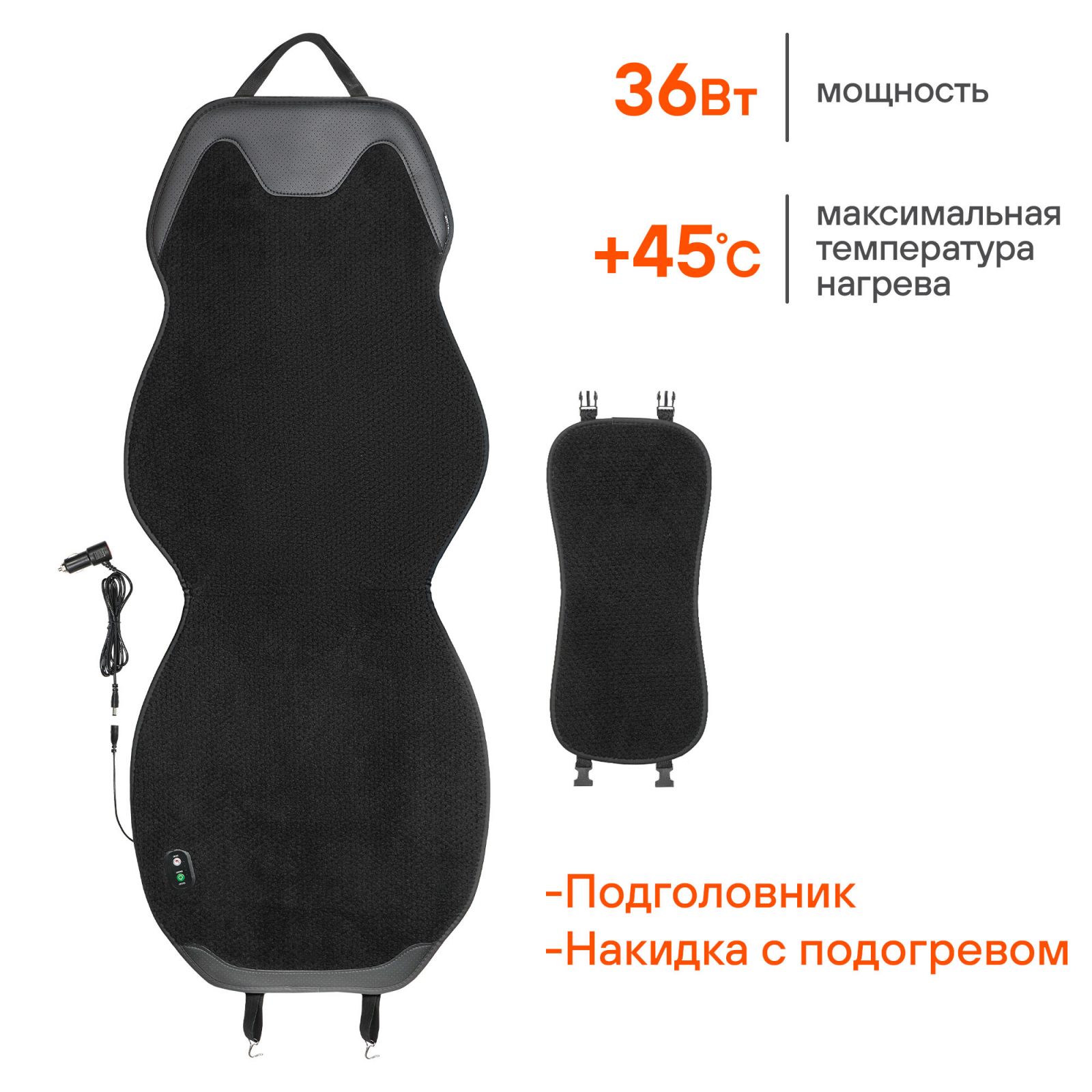 Накидка с подогревом на перед.сид. PRO, 12/24В, 36Вт,встр.пульт., искусст.мех/кожа,черн. (ADHC017)