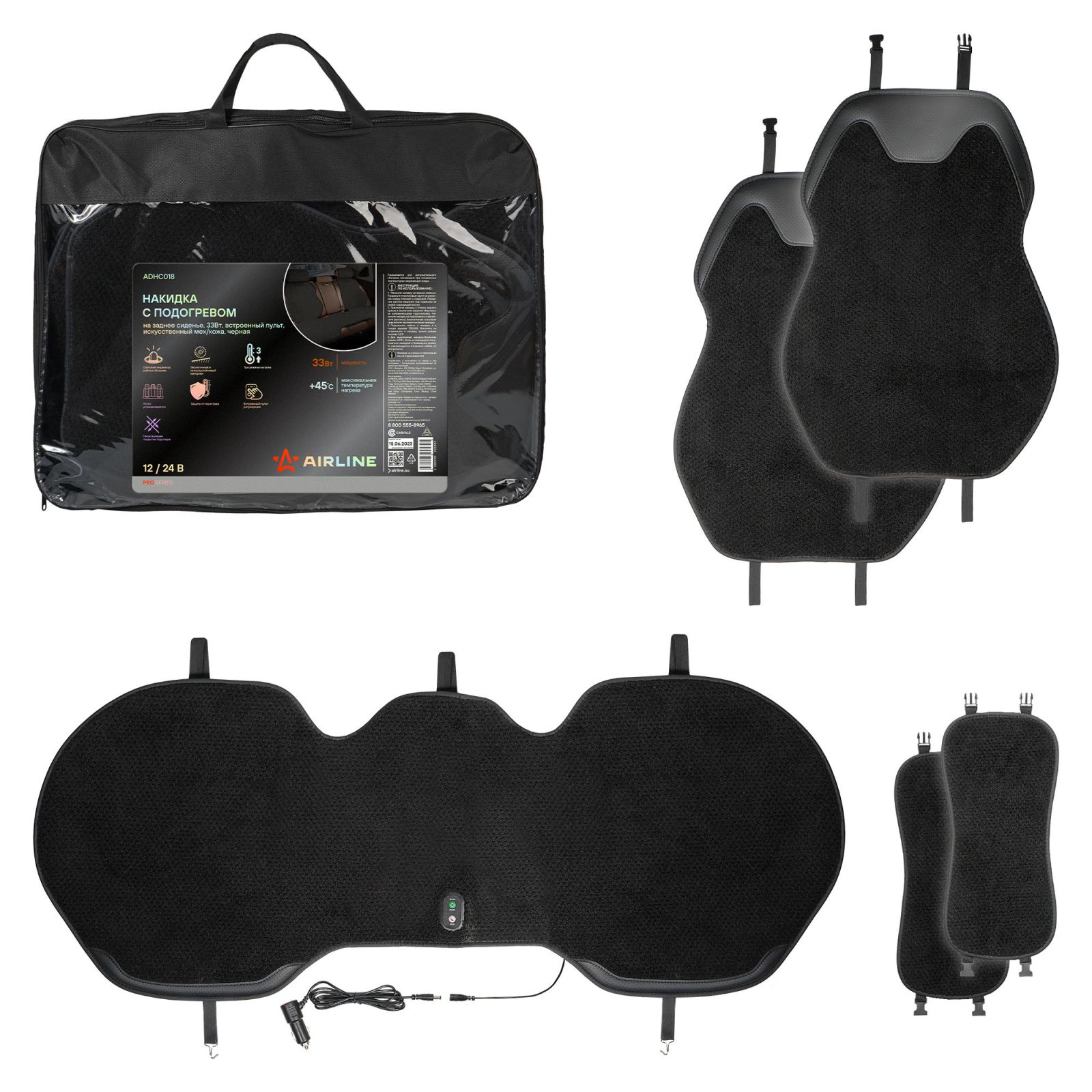 Накидка с подогревом на задн.сид. PRO, 12/24В, 33Вт,встр.пульт,искусст.мех/кожа,черн. (ADHC018)