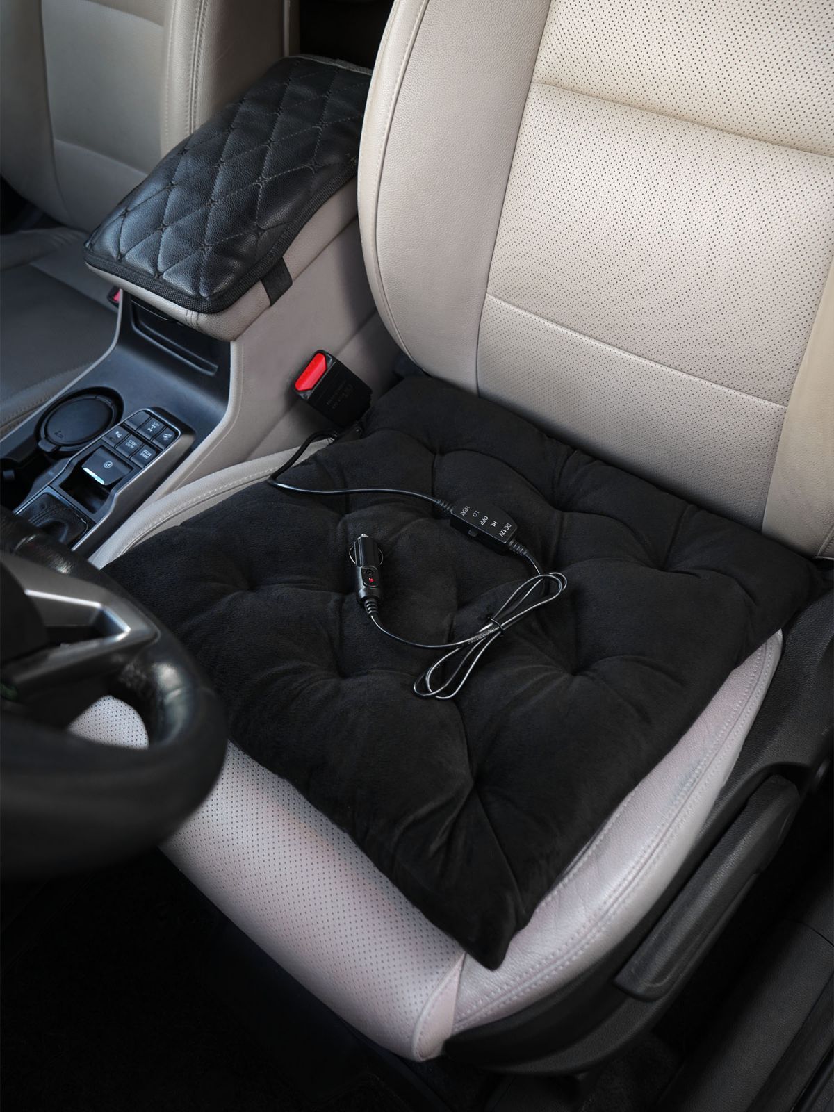 Подушка с подогревом на сиденье 12В, 19/26 Вт (41*41 см), стеганная, черная (ADHC019)