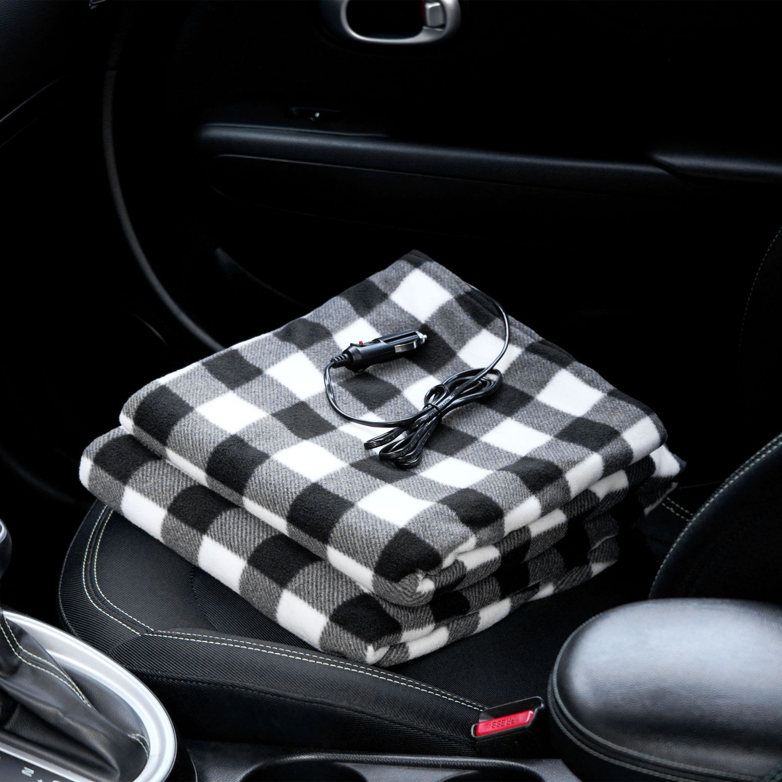 Плед с подогревом автомобильный 12В, 45Вт (140*110 см), флис, черно-белый (ADHC020)