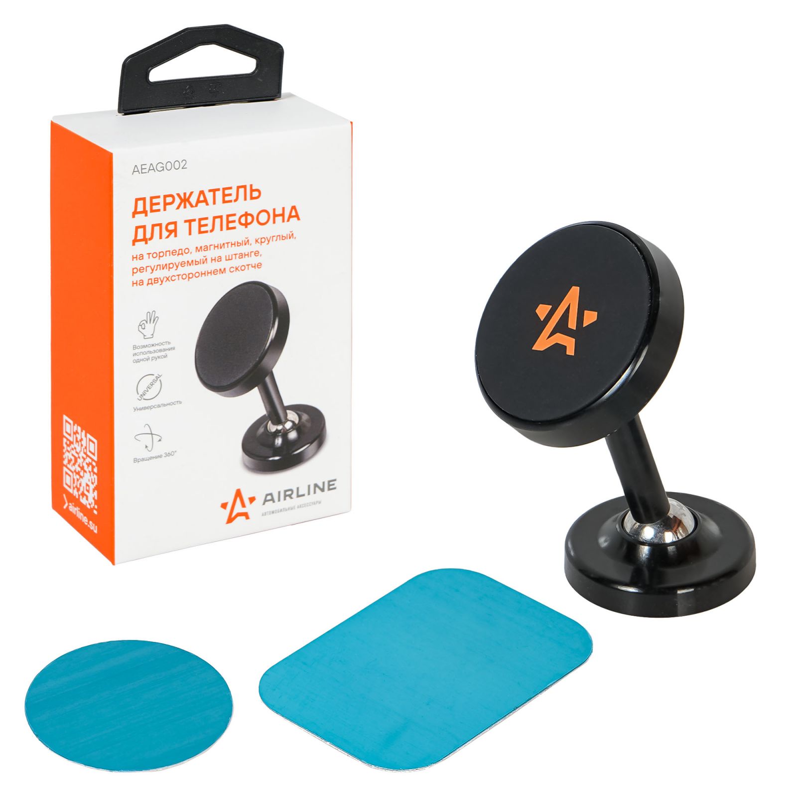 Держатель для телефона автомобильный на торпедо магнитный круглый регулируем. на штанге на двухст.скотче (AEAG002)